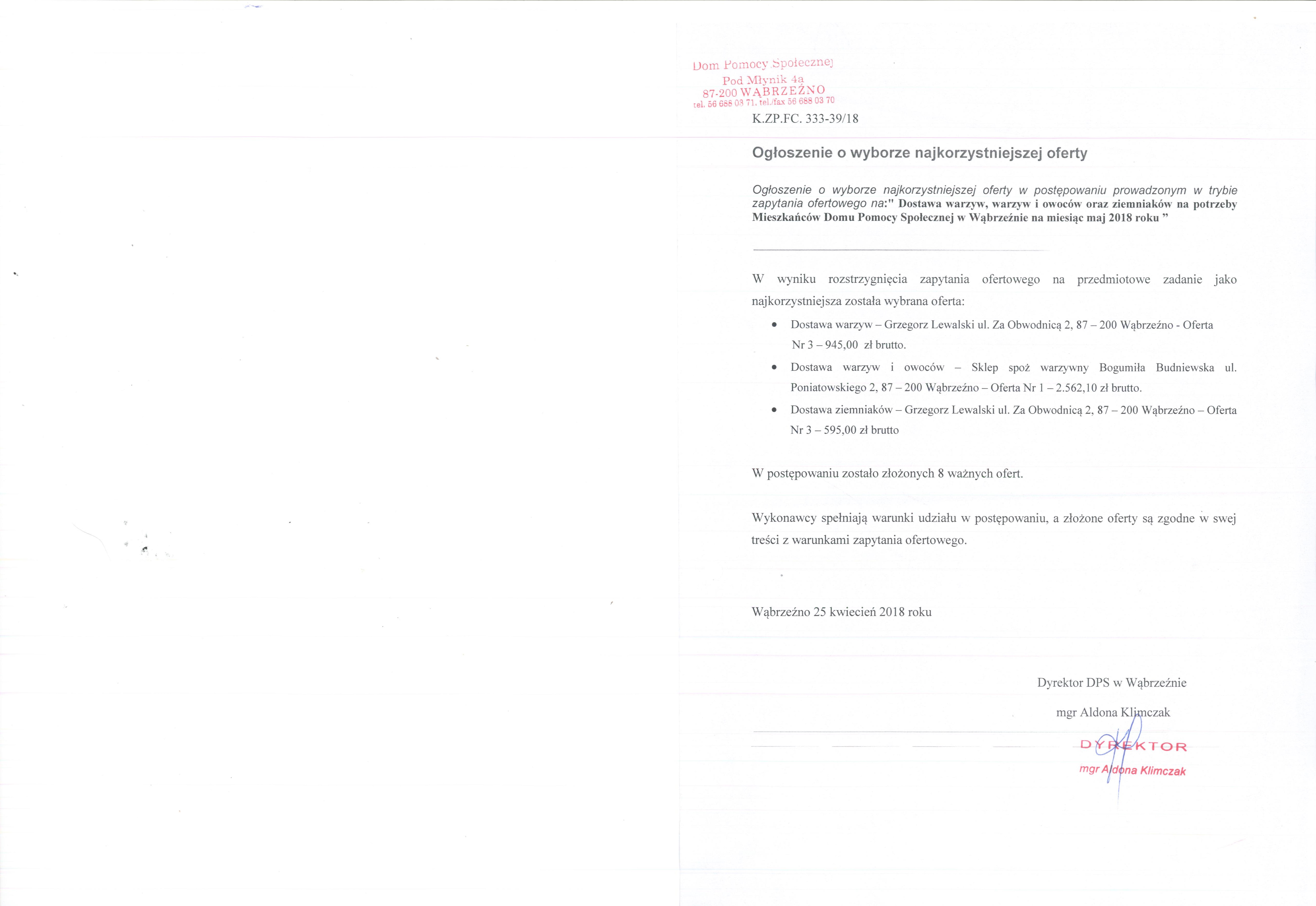 | inf o wyborze oferty maj | dodany: 12:08, 25.04.2018 | przez: Redaktor DPS |