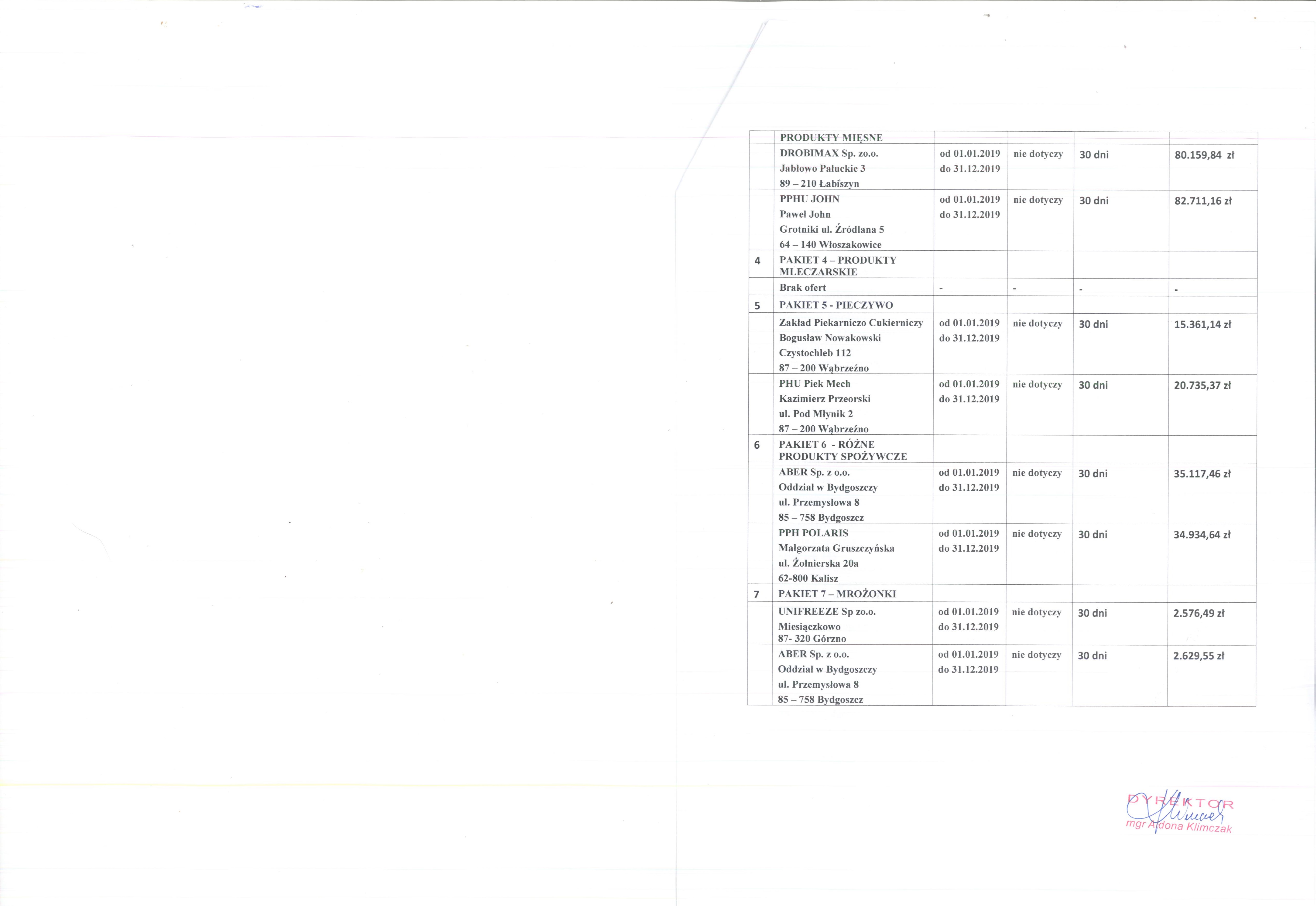 „Sukcesywny zakup i dostawa artykułów spożywczych – 2019 rok”