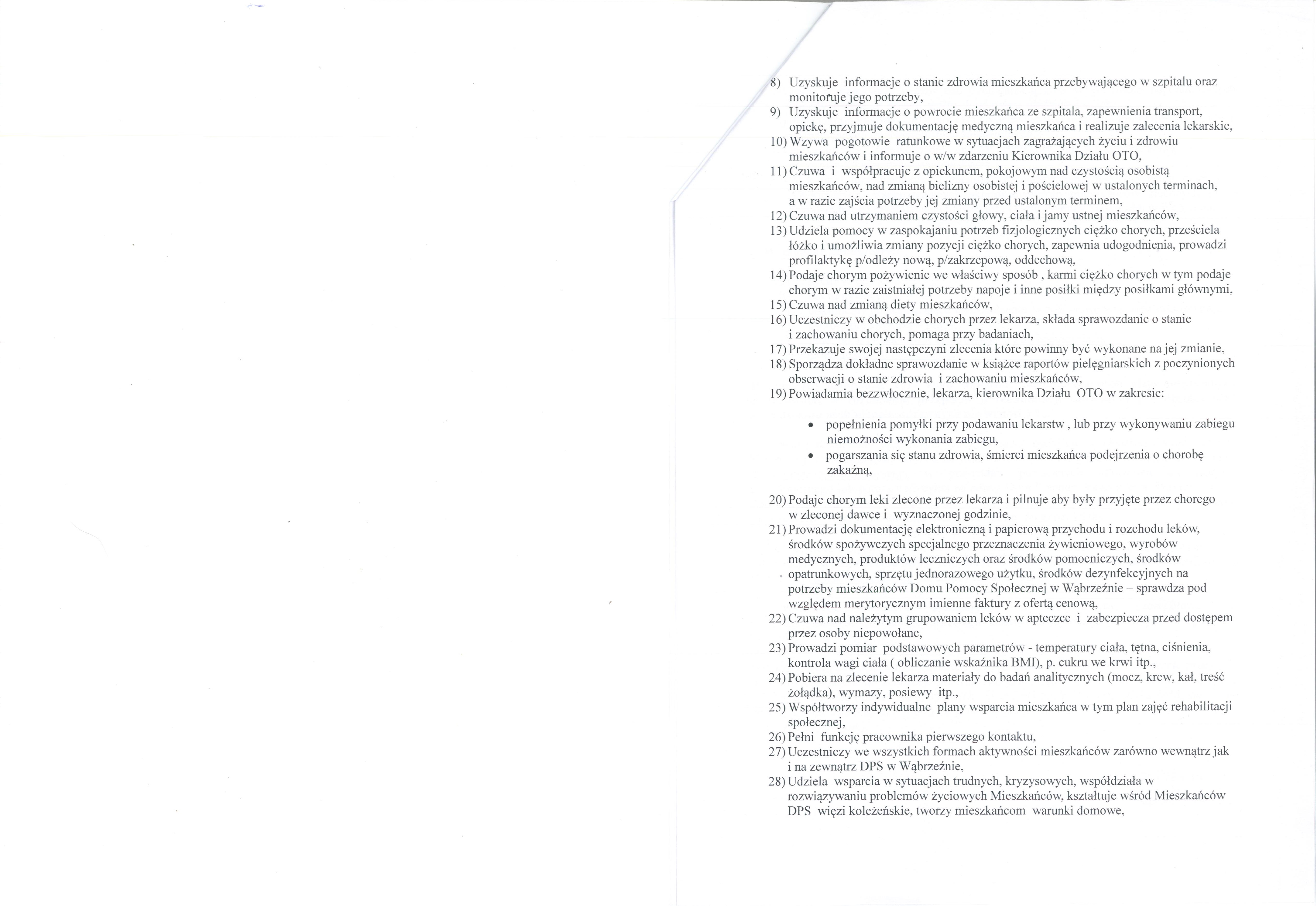 - Wykonuje inne czynności i zadania dotyczące zabezpieczenia usług bytowych, opiekuńczych, wspomagających skierowanych do mieszkańców zleconych przez bezpośredniego przełożonego i Dyrektora Domu Pomocy Społecznej w Wąbrzeźnie.