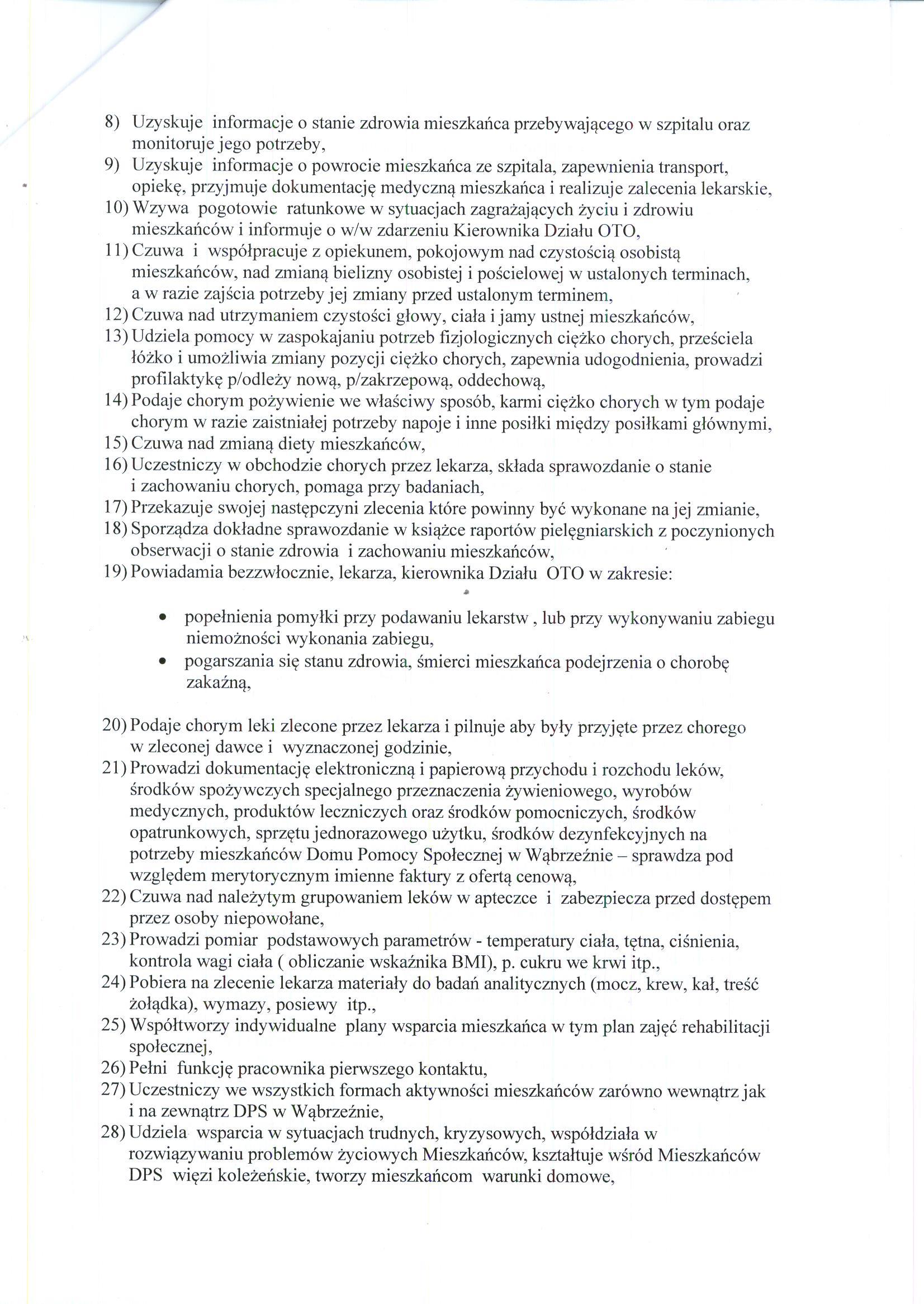 - Wykonuje czynności związane z przyjęciem mieszkańca do DPS w Wąbrzeźnie,