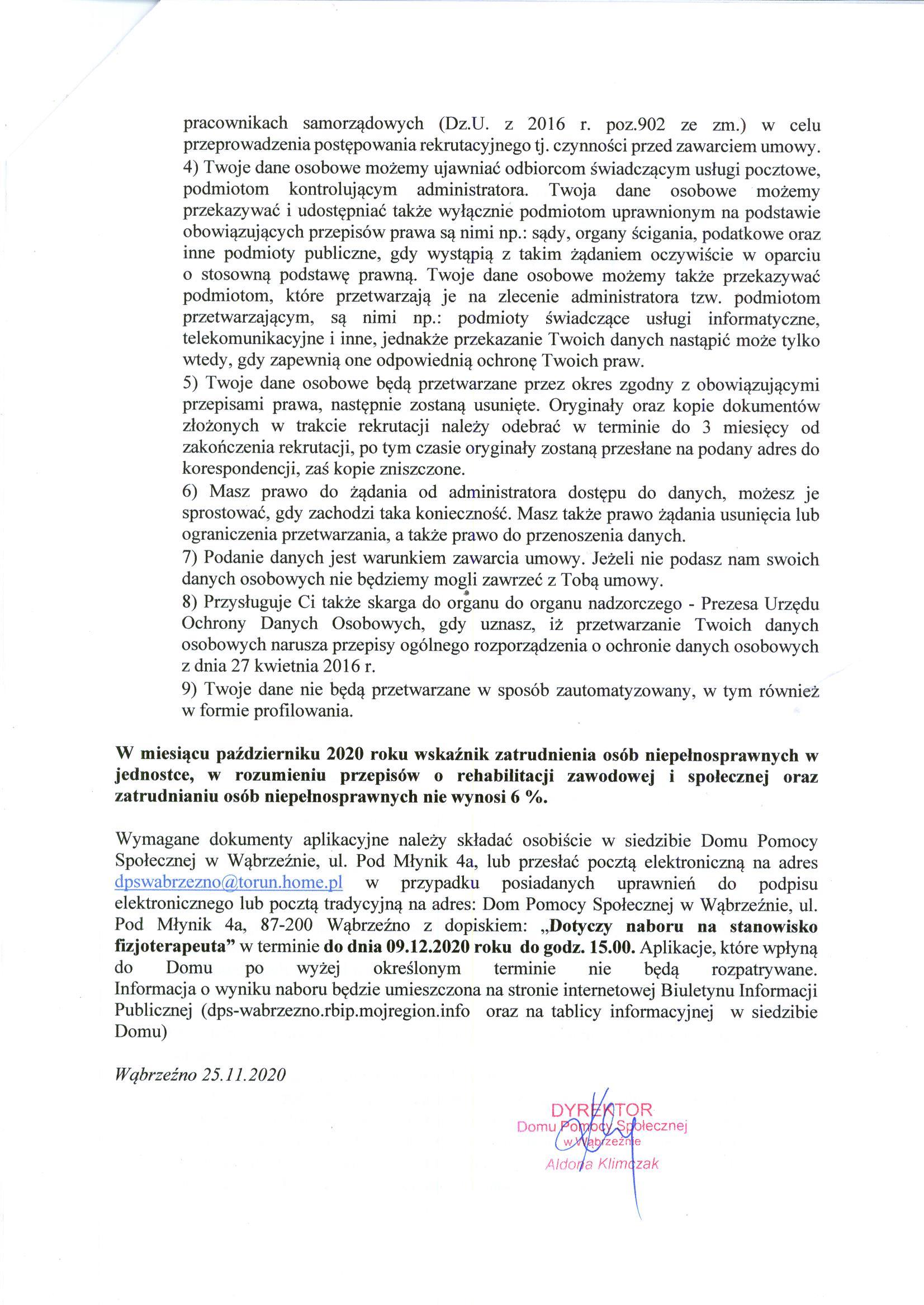 - Dyrektor Domu Pomocy Społecznej w Wąbrzeźnie zastrzega sobie prawo odwołania naboru w każdym czasie bez podania przyczyny;