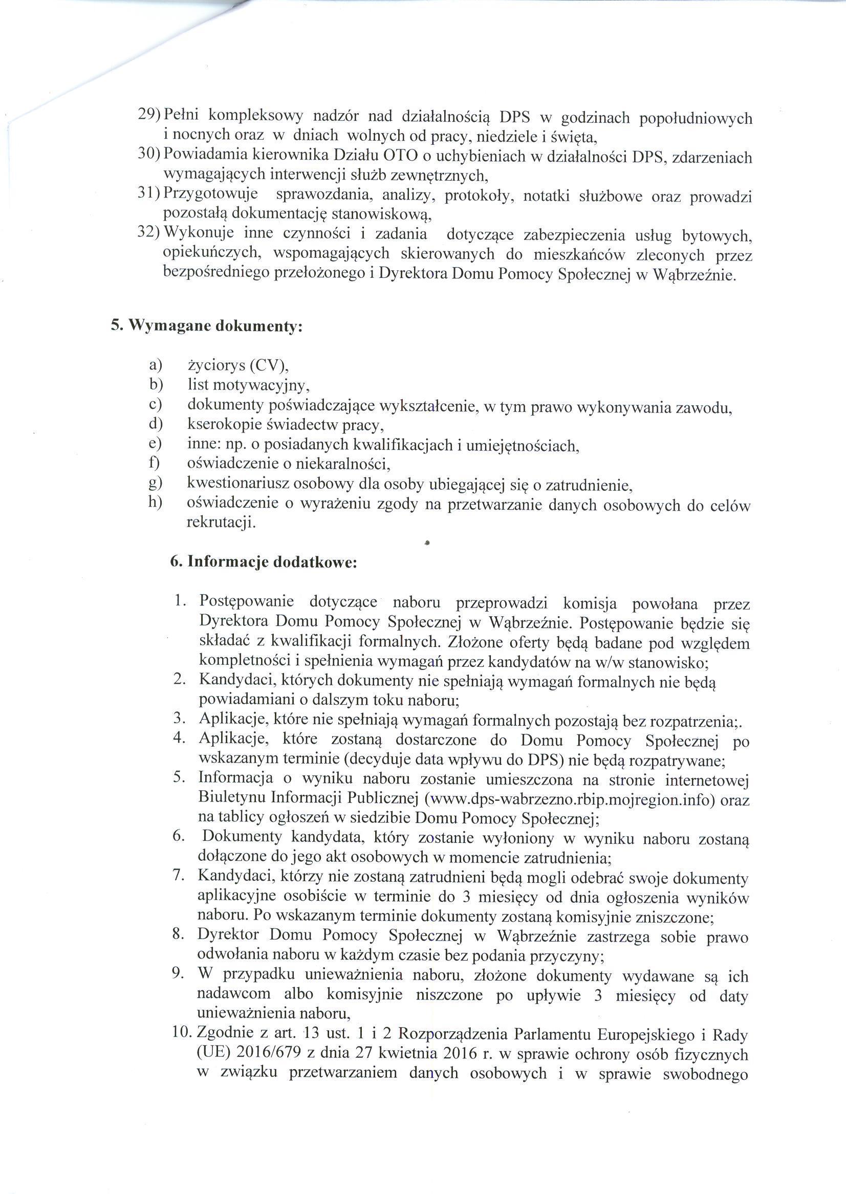 4. Dokumenty kandydata, który zostanie wyłoniony w wyniku naboru zostaną dołączone do jego akt osobowych w momencie zatrudnienia;