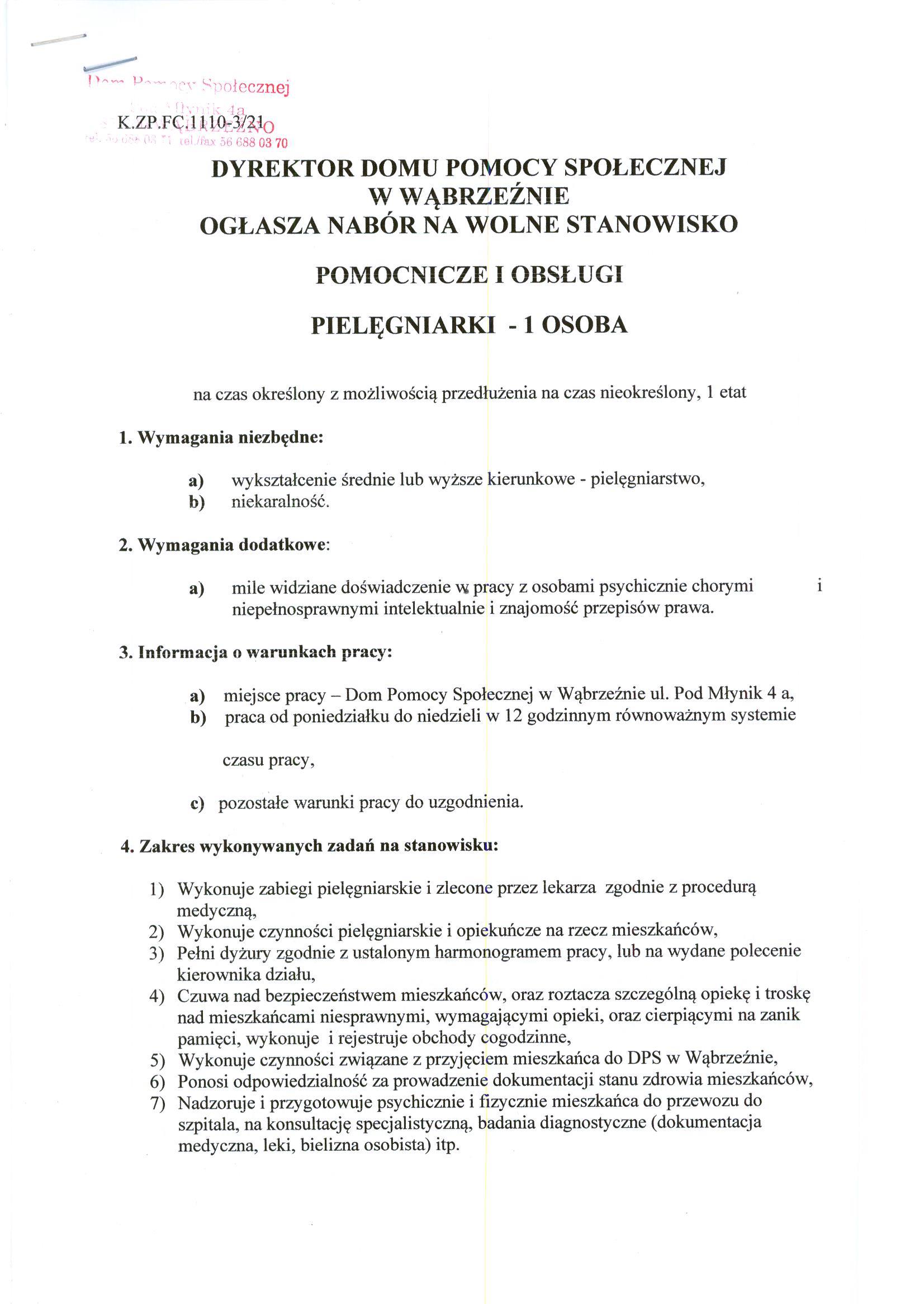 DYREKTOR DOMU POMOCY SPOŁECZNEJ W WĄBRZEŹNIE