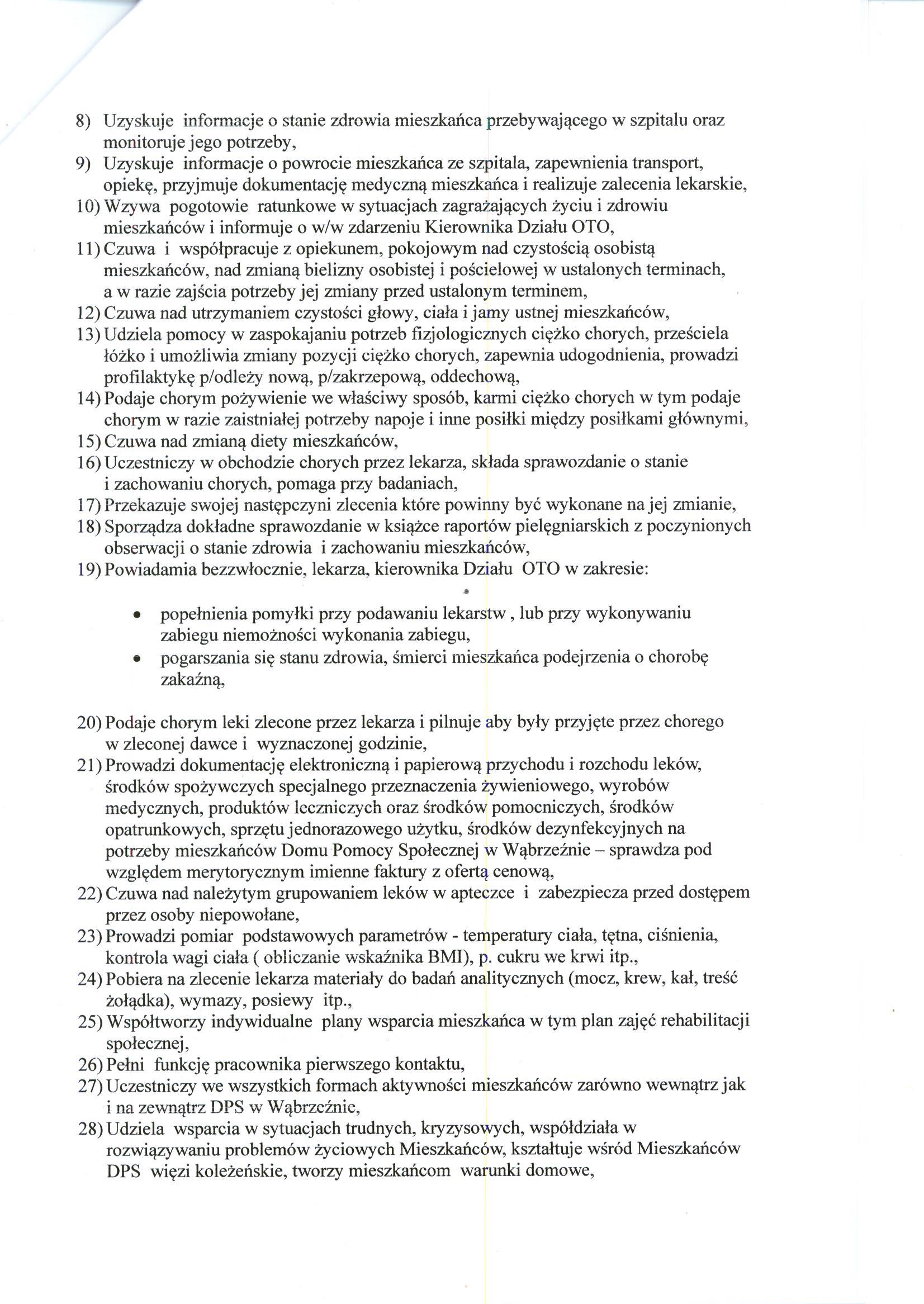 - Wykonuje czynności związane z przyjęciem mieszkańca do DPS w Wąbrzeźnie,