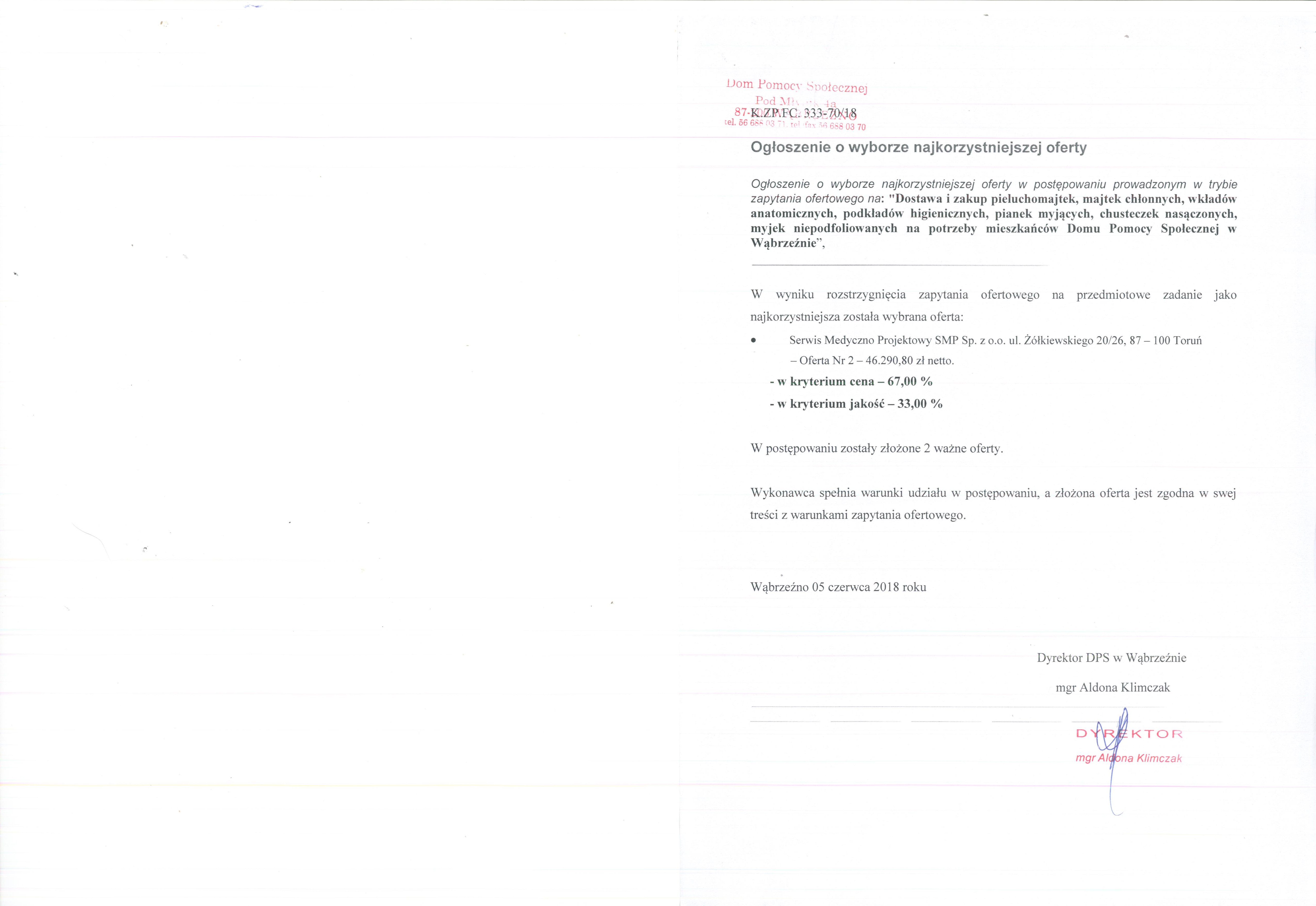 Wąbrzeźno 05 czerwca 2018 roku Dyrektor DPS w Wąbrzeźnie