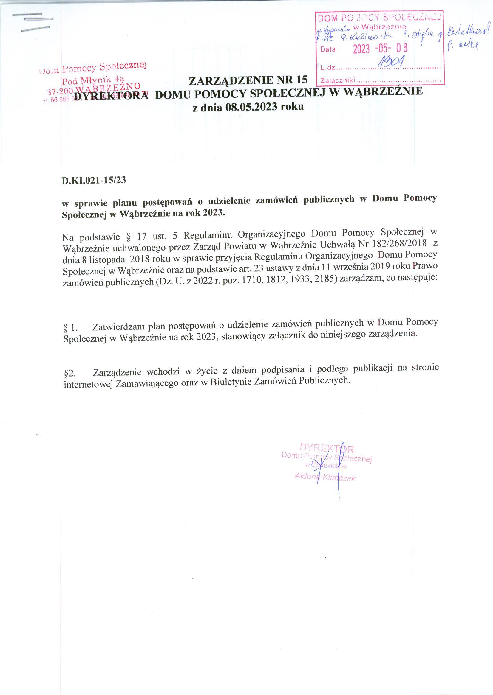 | zarządzenie 15.23 (Rozmiar: 255 kB, JPG) | dodany: 11:23, 15.05.2023 | przez: Redaktor DPS |