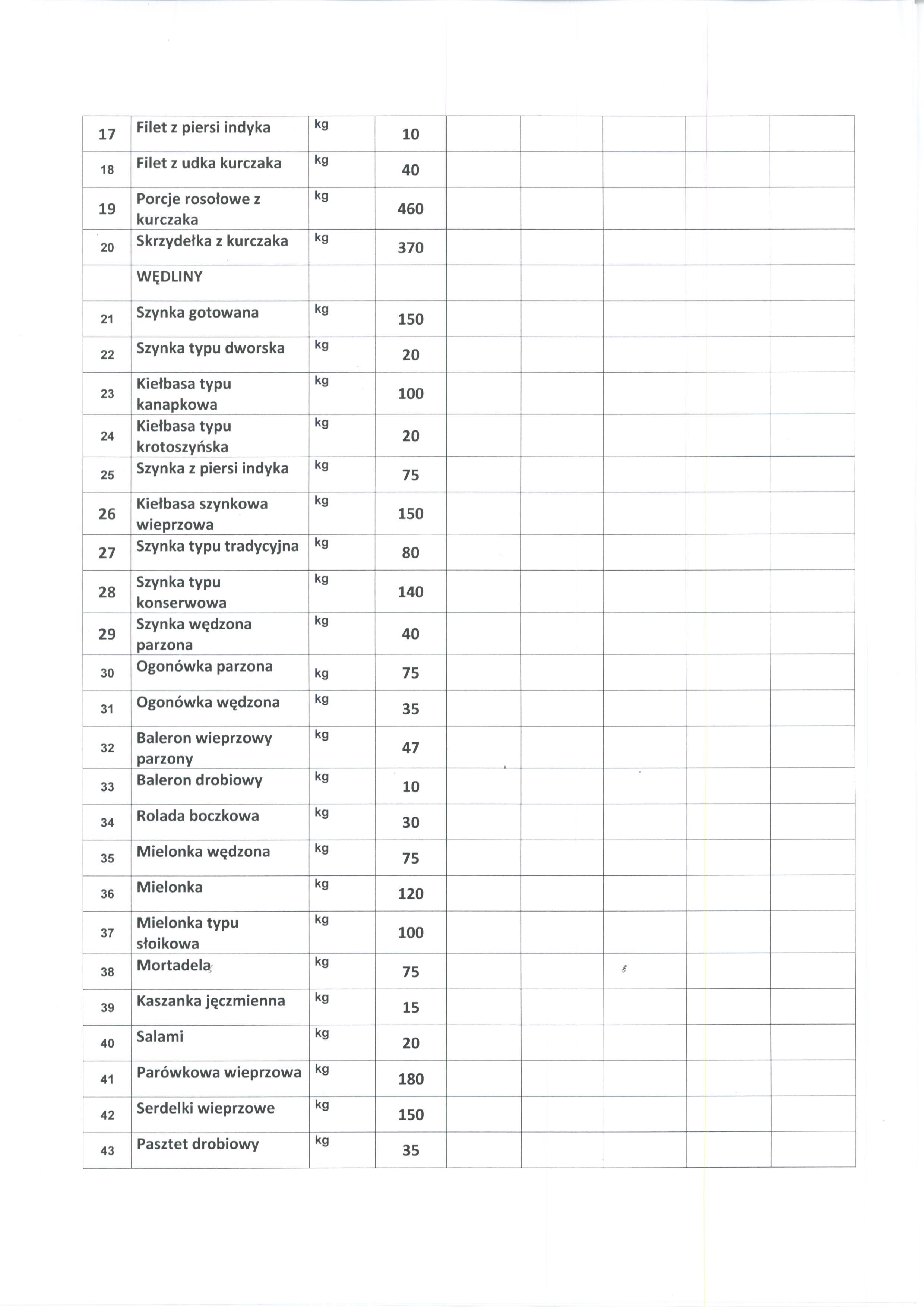 | 43 | Pasztet drobiowy | kg | 35 | |||||