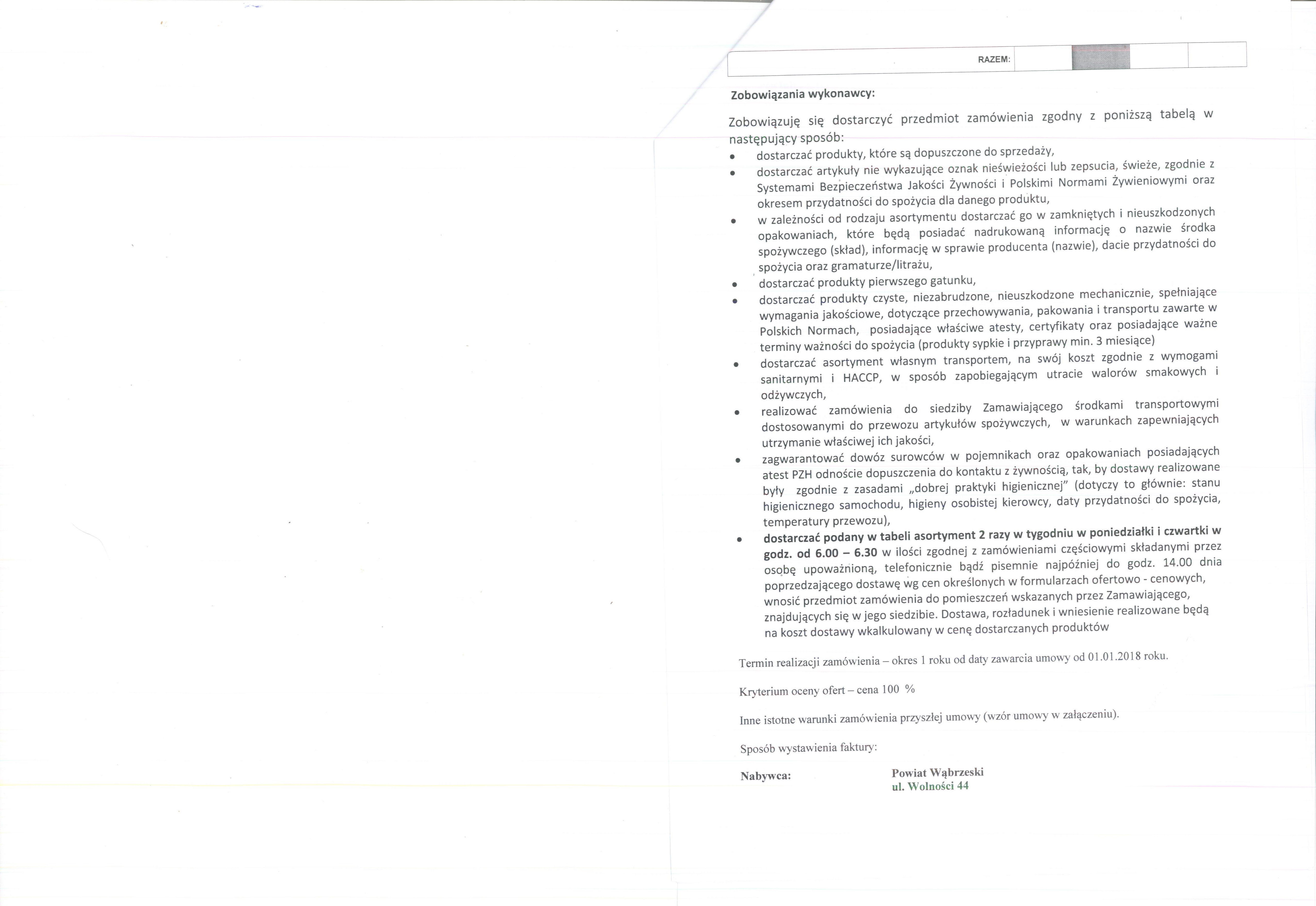 Termin realizacji zamówienia – okres 1 roku od daty zawarcia umowy od 01.01.2018 roku.