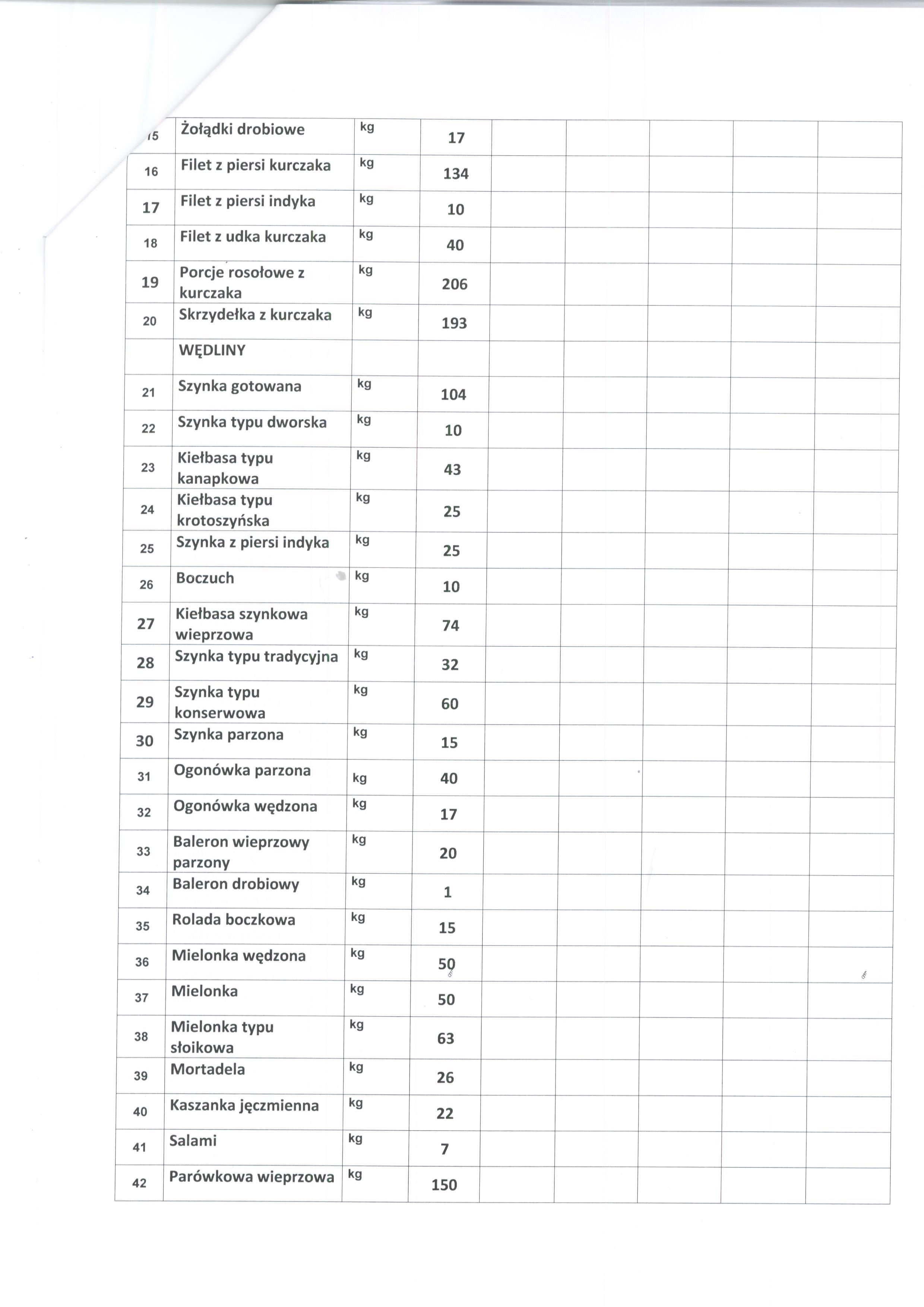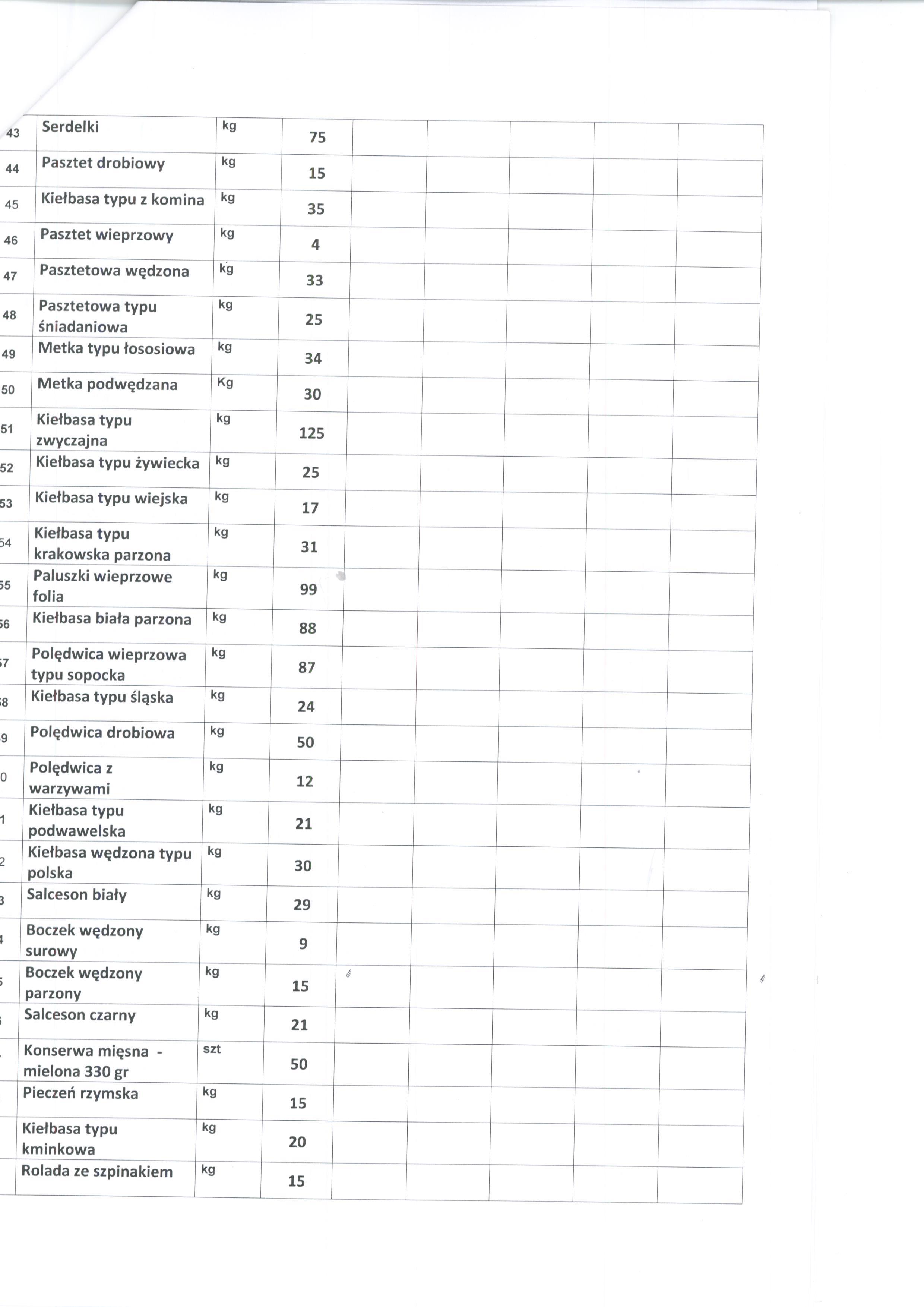 23 Kiełbasa typu kanapkowa kg 43