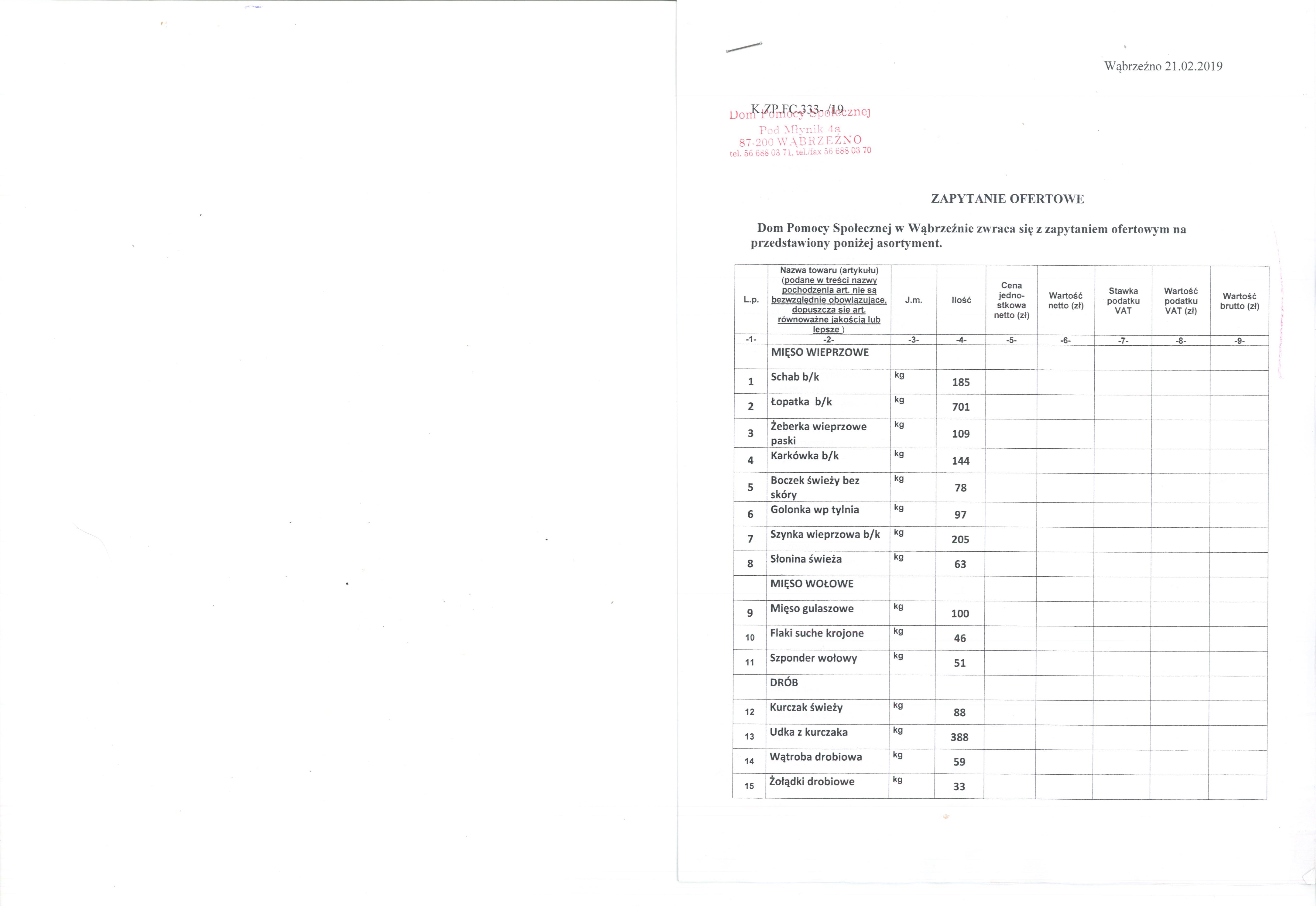 | 15 | Żołądki drobiowe | kg | 33 | |||||