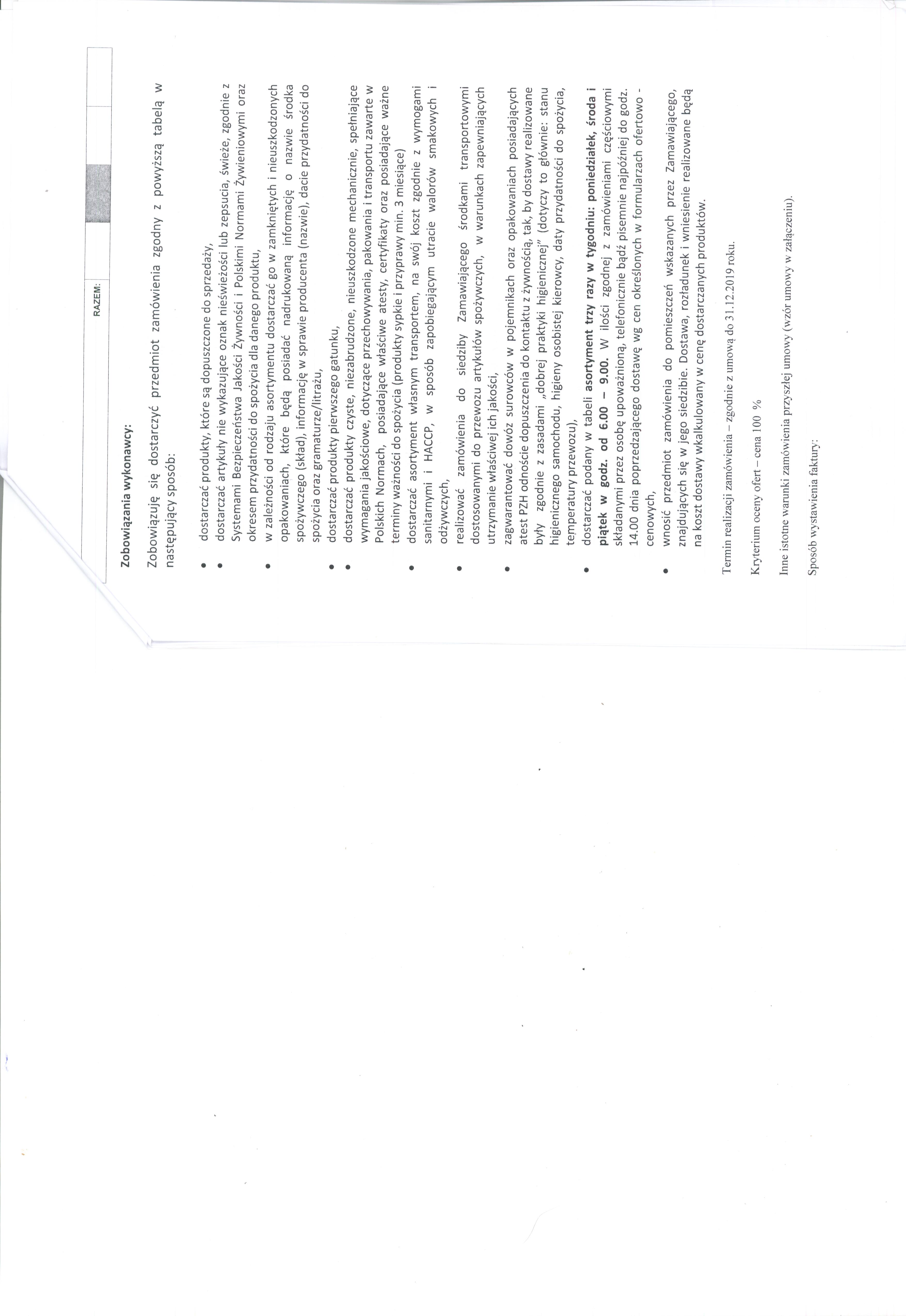 Termin realizacji zamówienia – zgodnie z umową do 31.12.2019 roku.