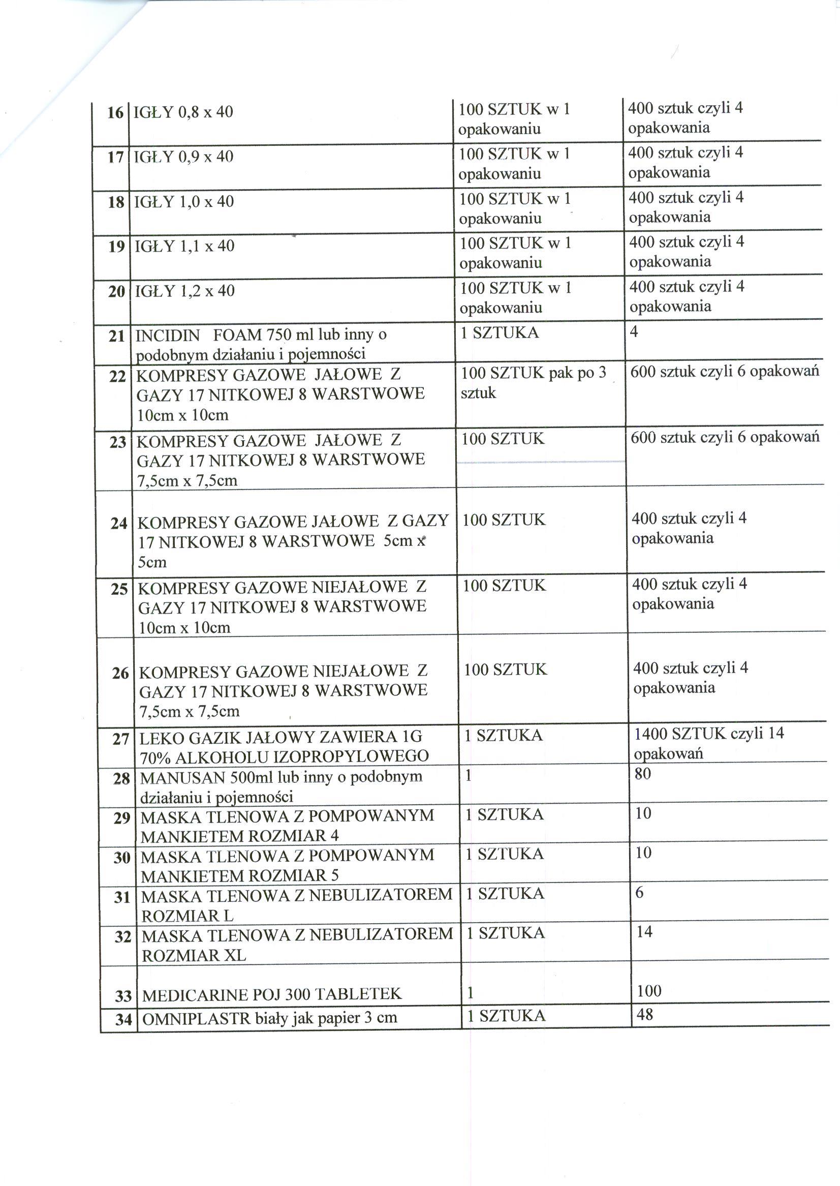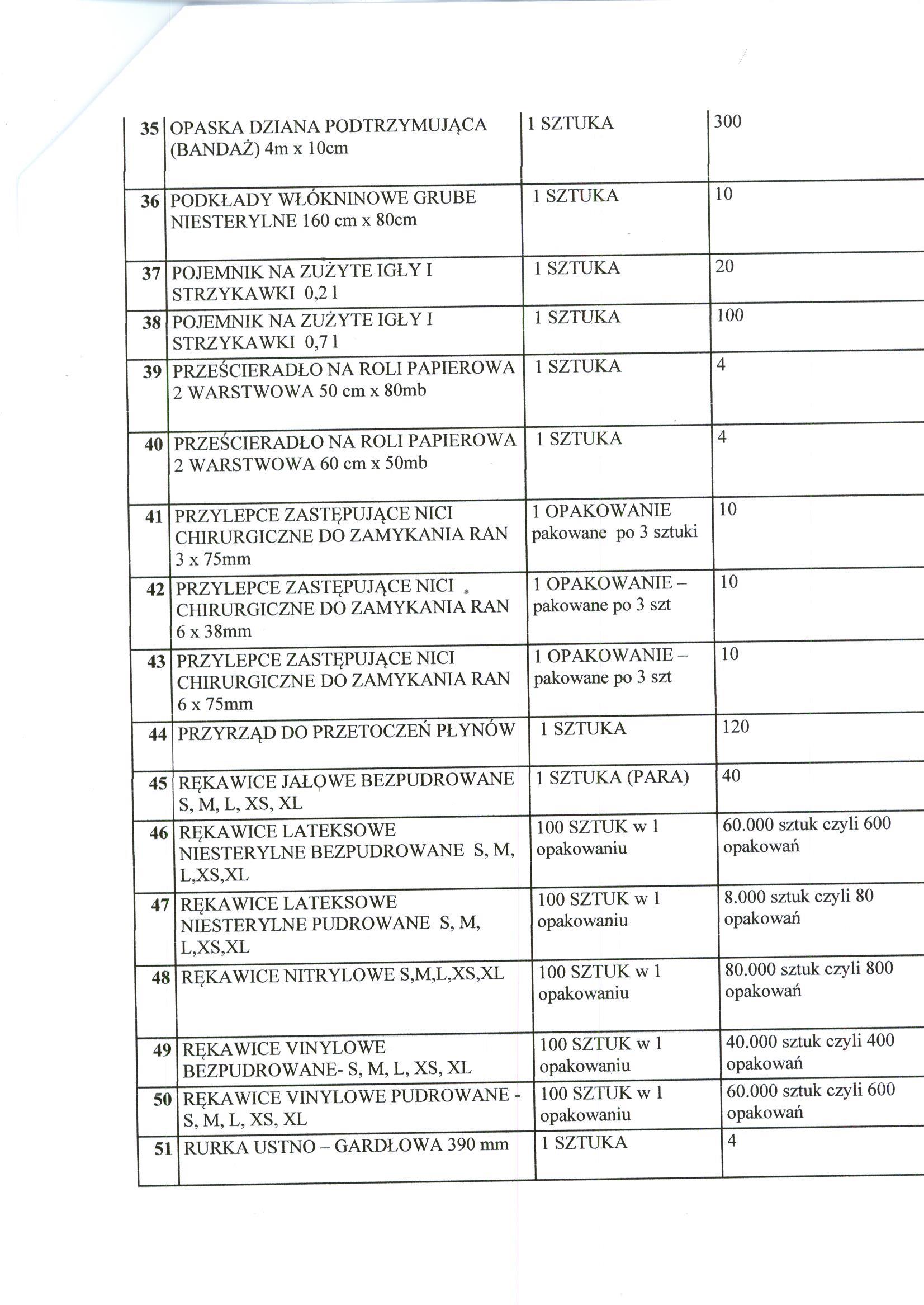 | 35 | OPASKA DZIANA PODTRZYMUJĄCA (BANDAŻ) 4m x 10cm | 1 SZTUKA | 300 |