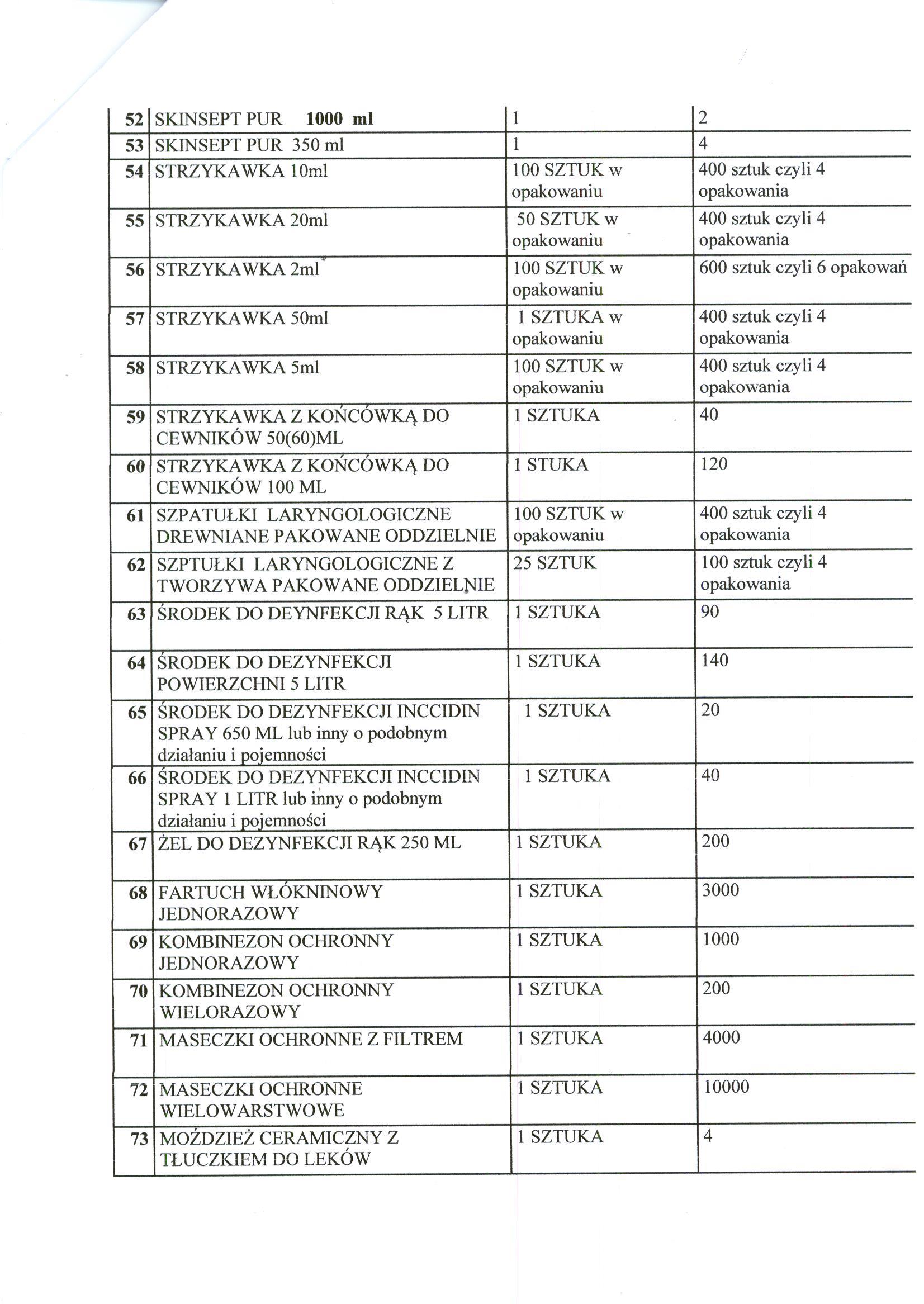 Ilość zamawianych artykułów może ulec zmianie w trakcie obowiązywania umowy w zależności od sytuacji epidemicznej w kraju.