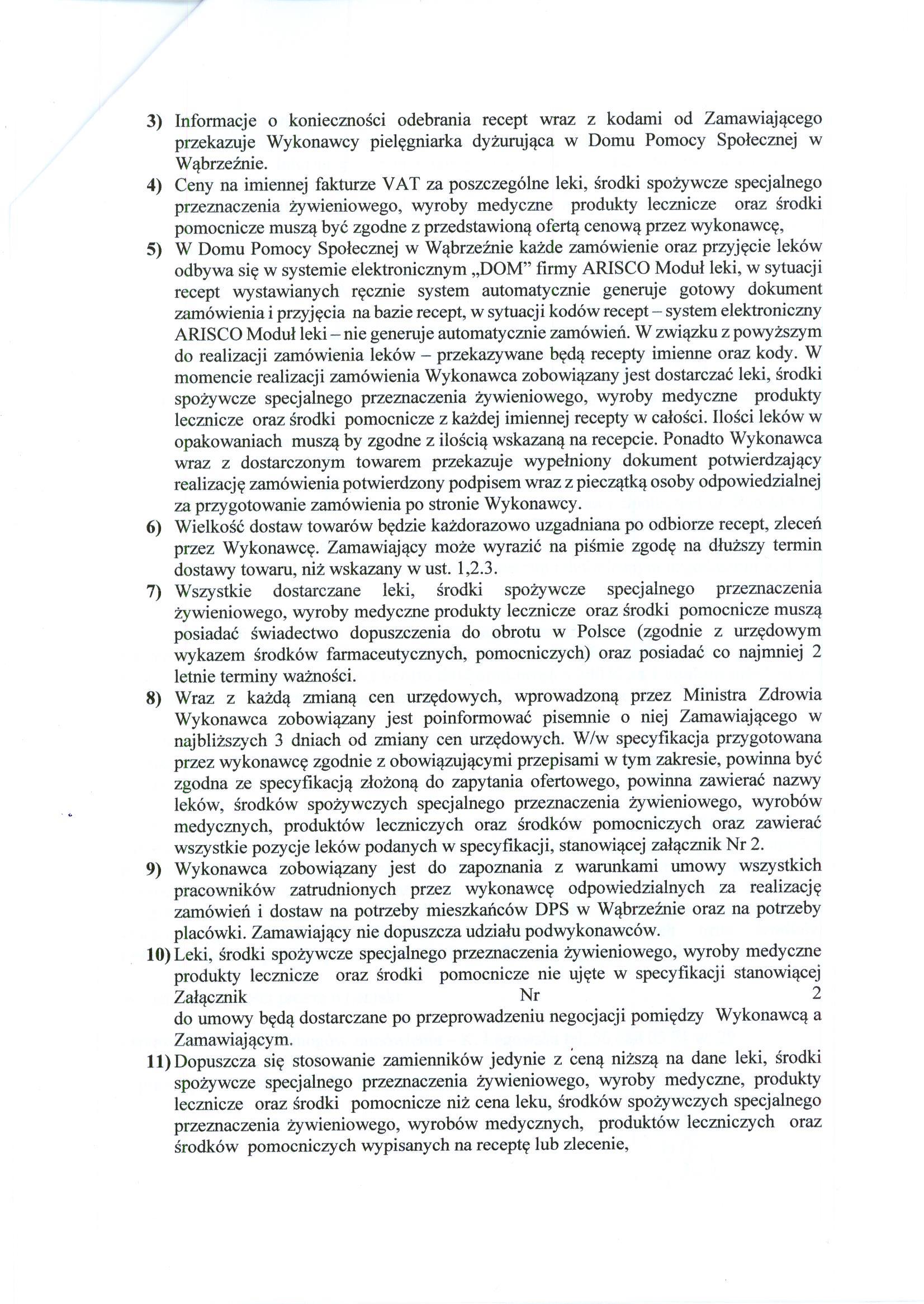 - Leki, środki spożywcze specjalnego przeznaczenia żywieniowego, wyroby medyczne produkty lecznicze oraz środki pomocnicze nie ujęte w specyfikacji stanowiącej Załącznik Nr 2 do umowy będą dostarczane po przeprowadzeniu negocjacji pomiędzy Wykonawcą a Zamawiającym.