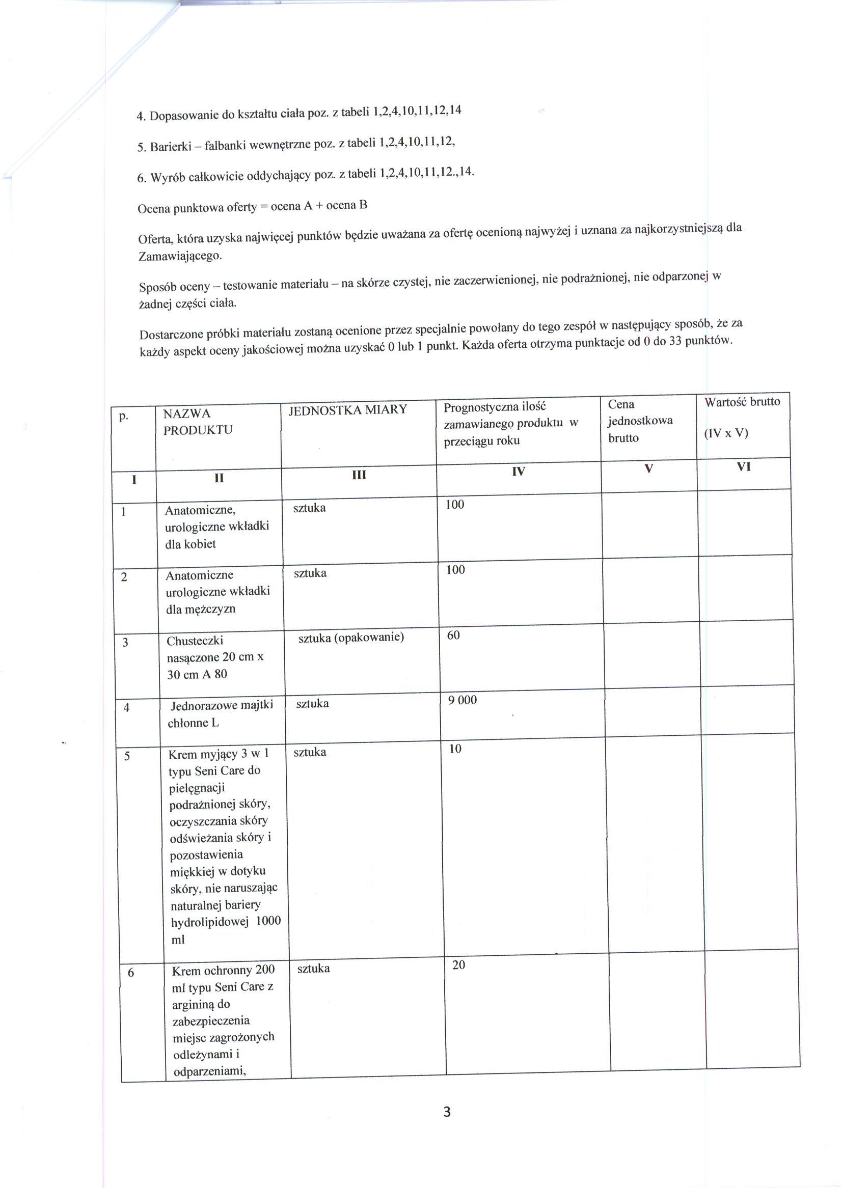 | 4 | Jednorazowe majtki chłonne L | sztuka | 9 000 | ||