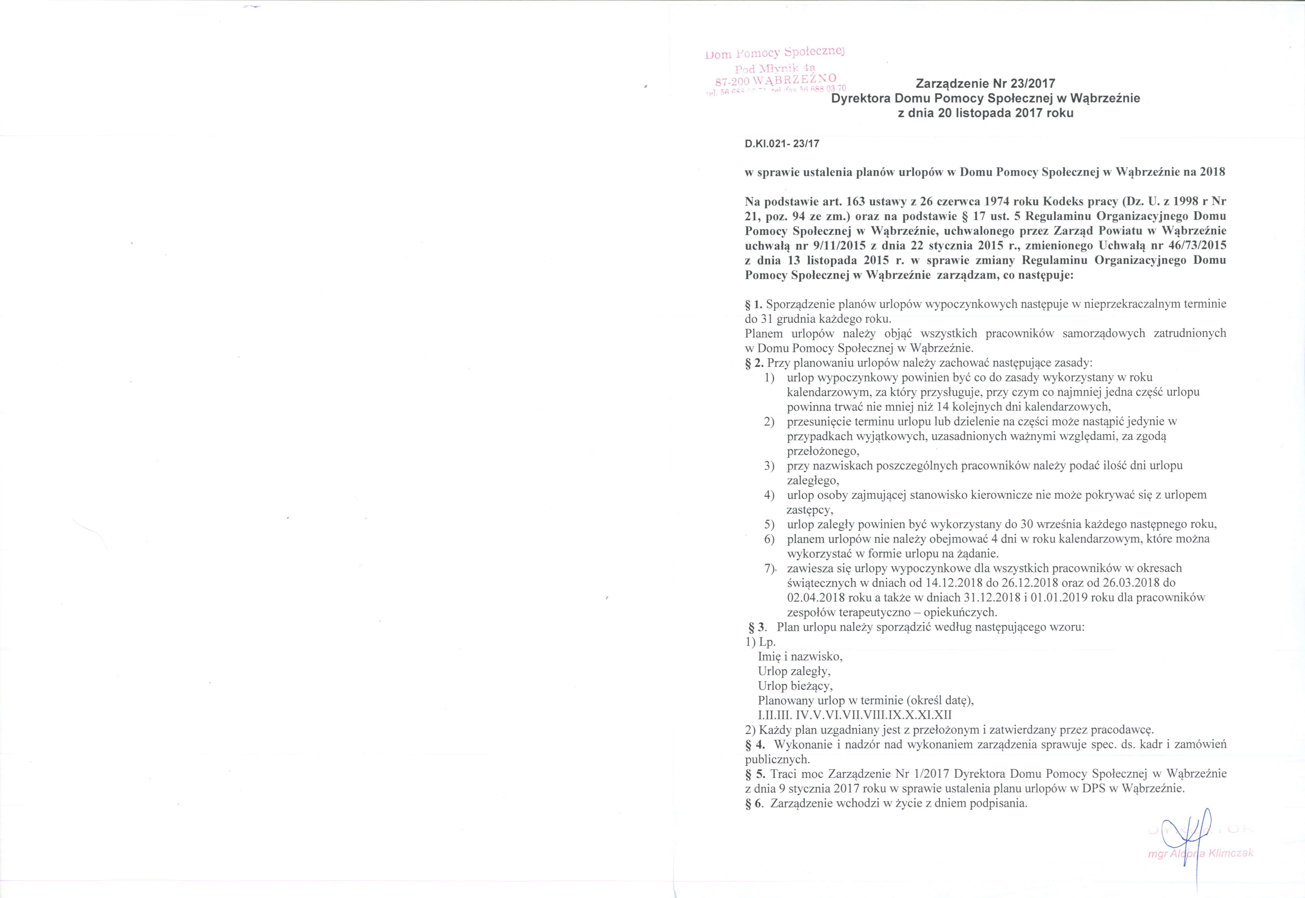 | zarządzenie 23 | dodany: 13:16, 24.11.2017 | przez: Redaktor DPS |