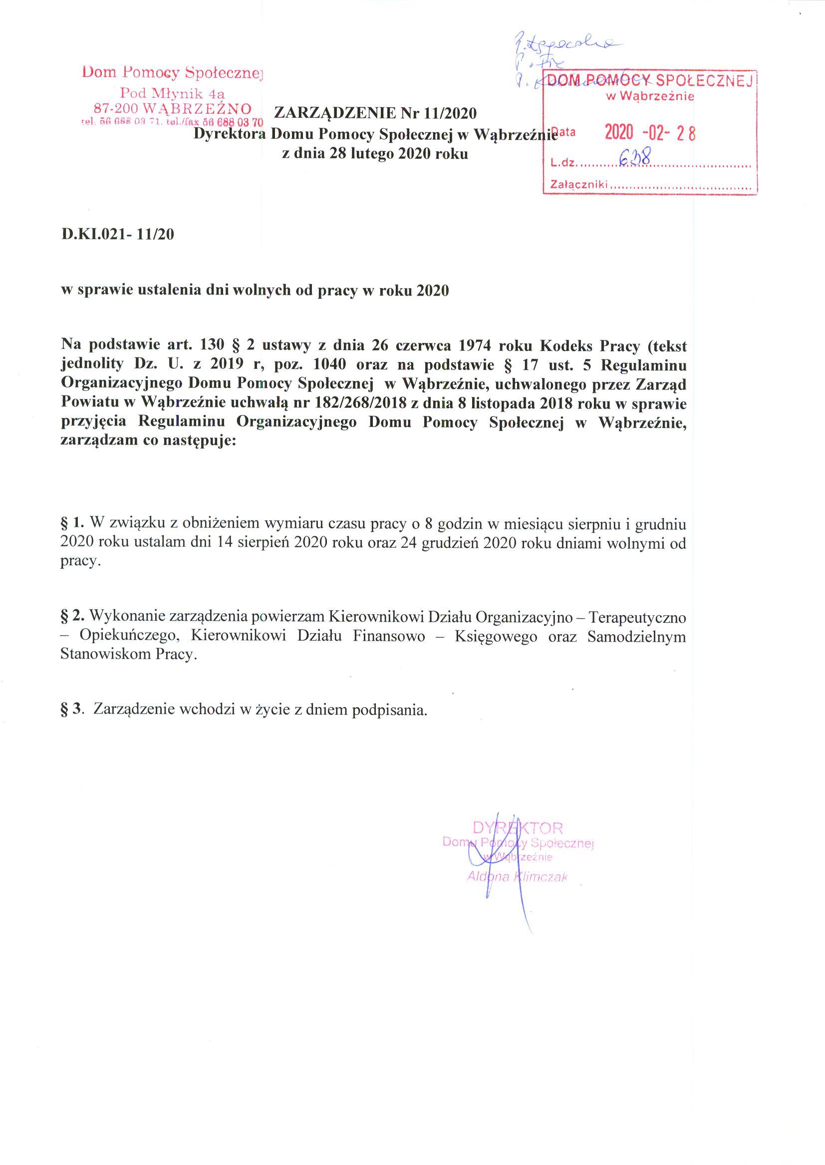 | zarządzenie dni wolne | dodany: 09:34, 02.03.2020 | przez: Redaktor DPS |