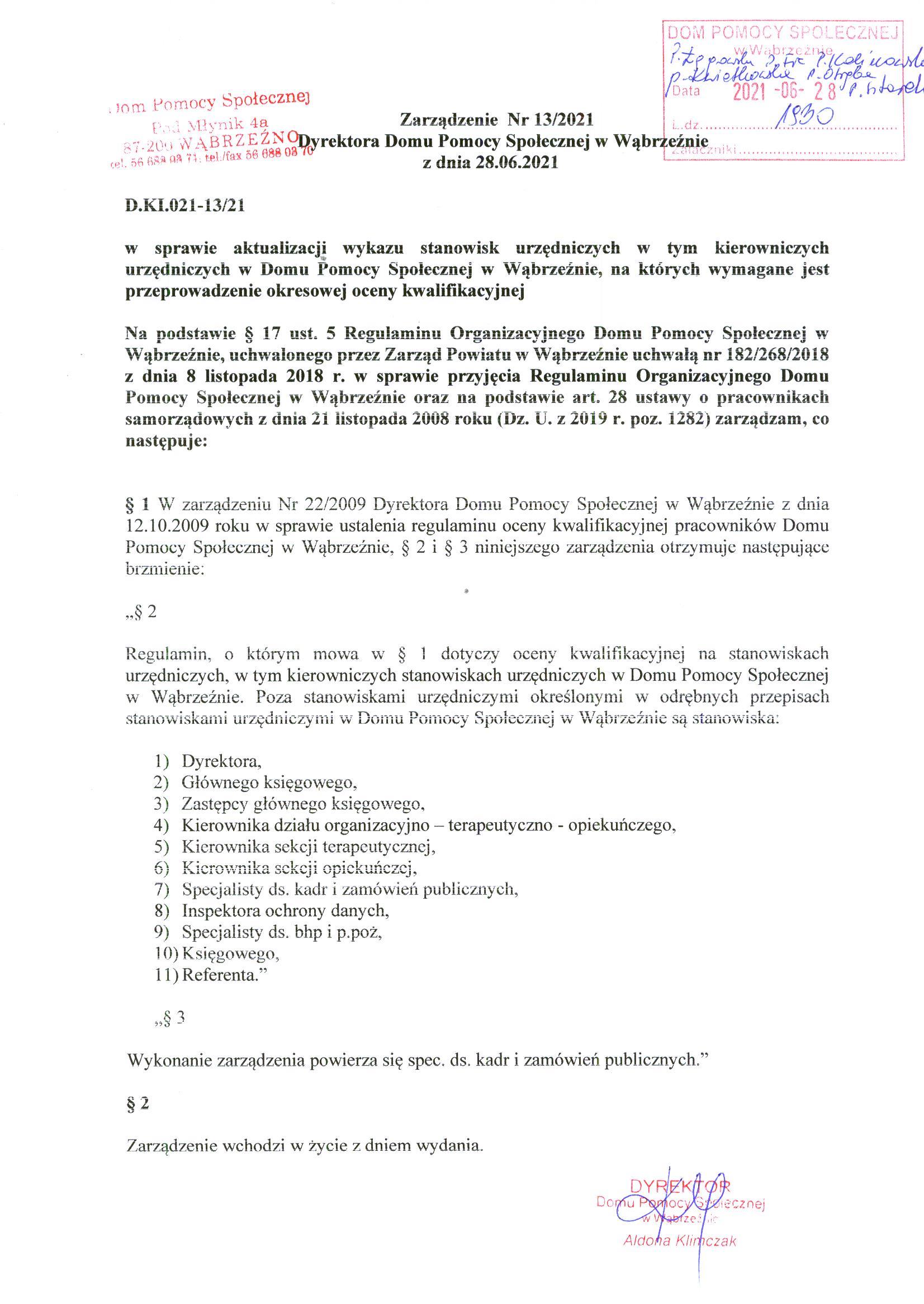 | zarządzenie 13-21 | dodany: 09:54, 09.07.2021 | przez: Redaktor DPS |