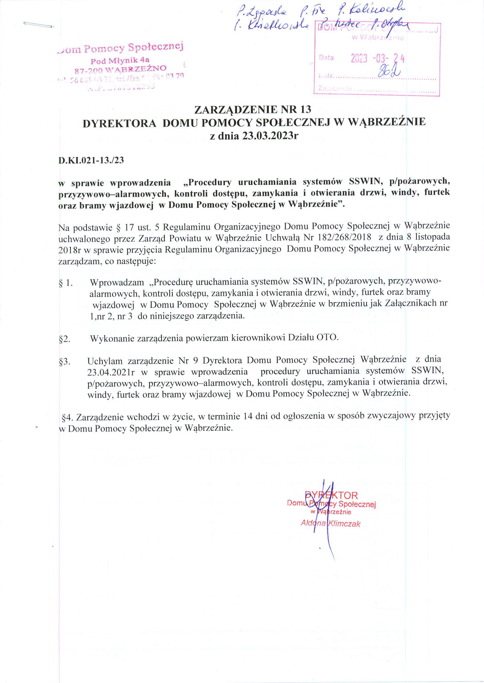 | zarządzenie 13.2023.2 (Rozmiar: 325 kB, JPG) | dodany: 09:27, 31.03.2023 | przez: Redaktor DPS |
