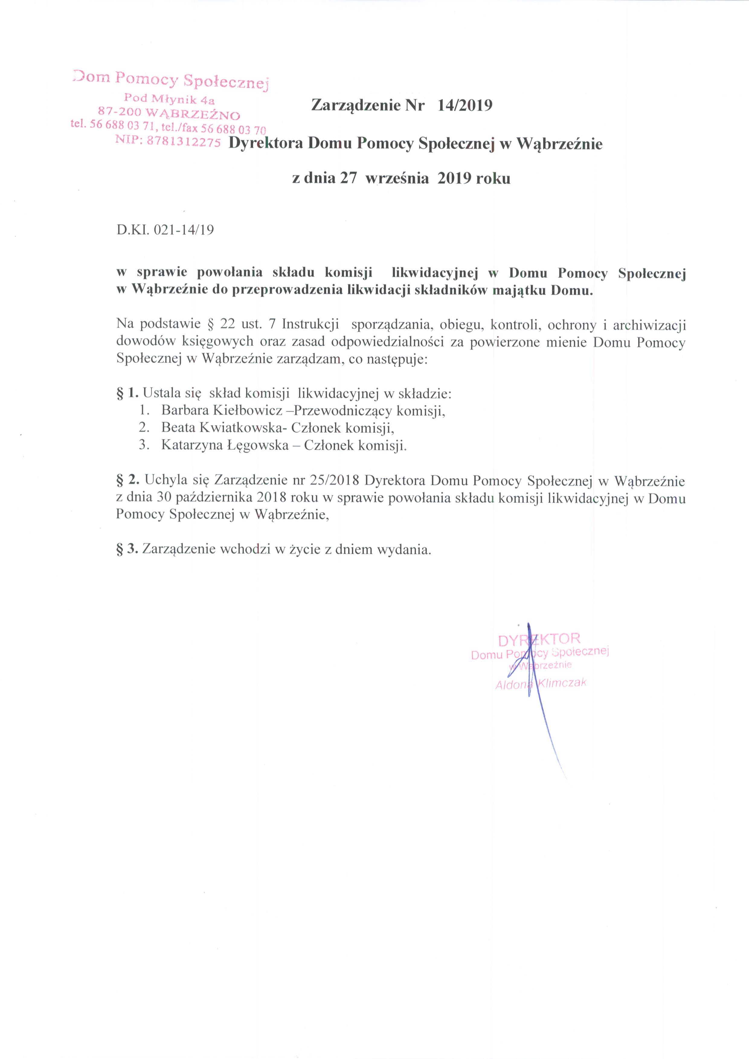 | zarzadzenie 14-19.2 | dodany: 09:52, 01.10.2019 | przez: Redaktor DPS |