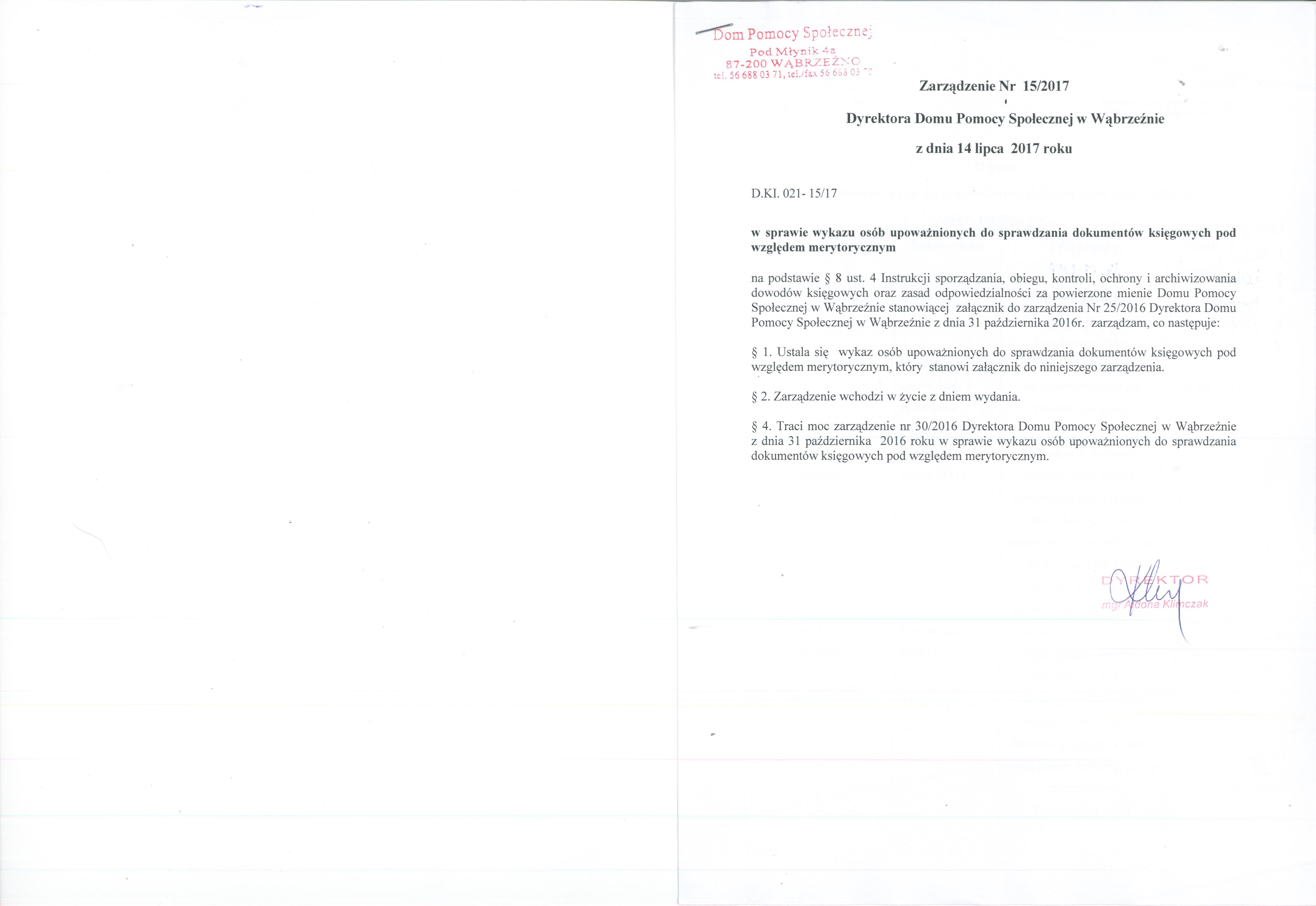 | ZARZĄDZENIE 15 | dodany: 08:28, 20.07.2017 | przez: Redaktor DPS |