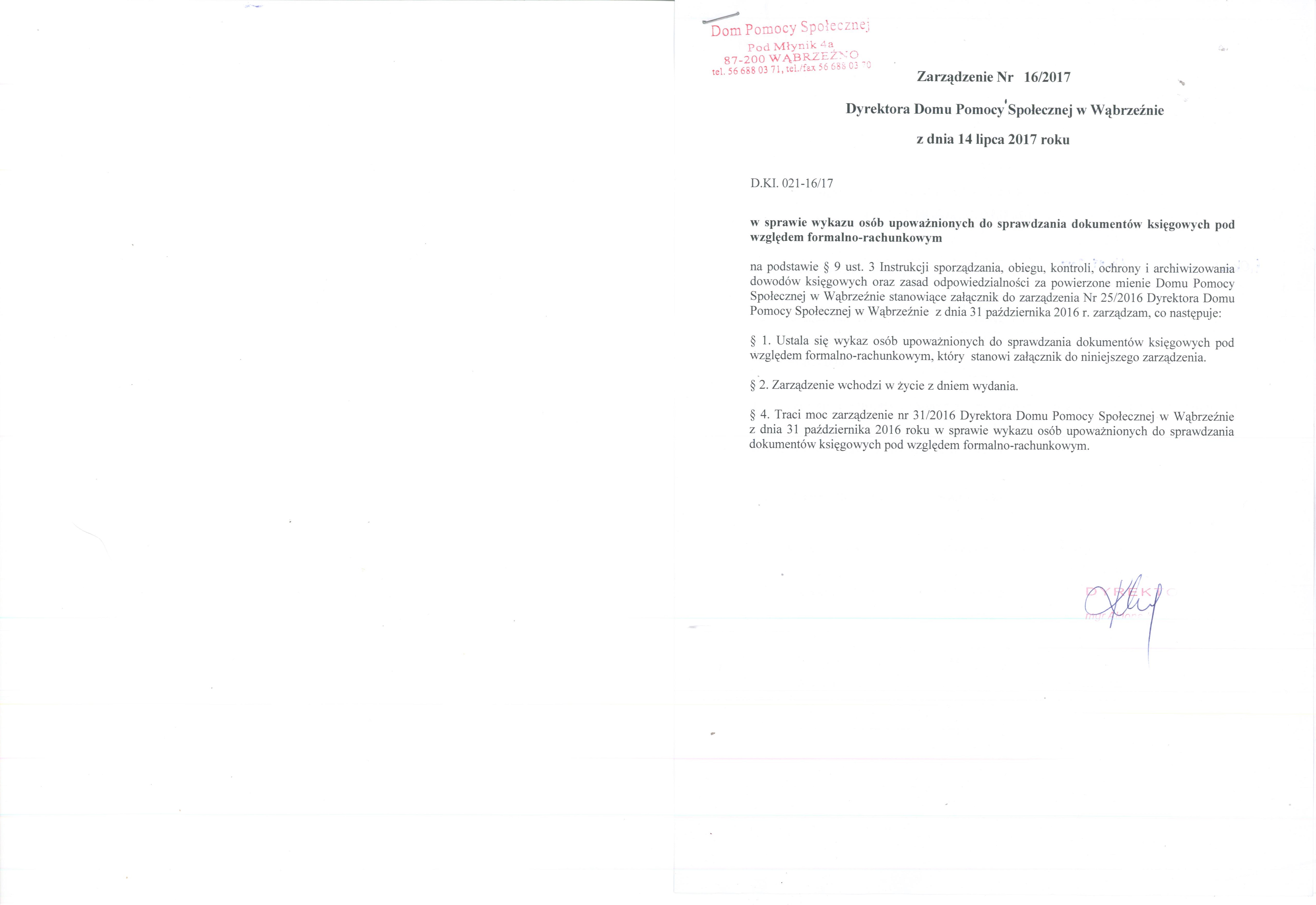| ZARZĄDZENIE 16 | dodany: 08:58, 20.07.2017 | przez: Redaktor DPS |