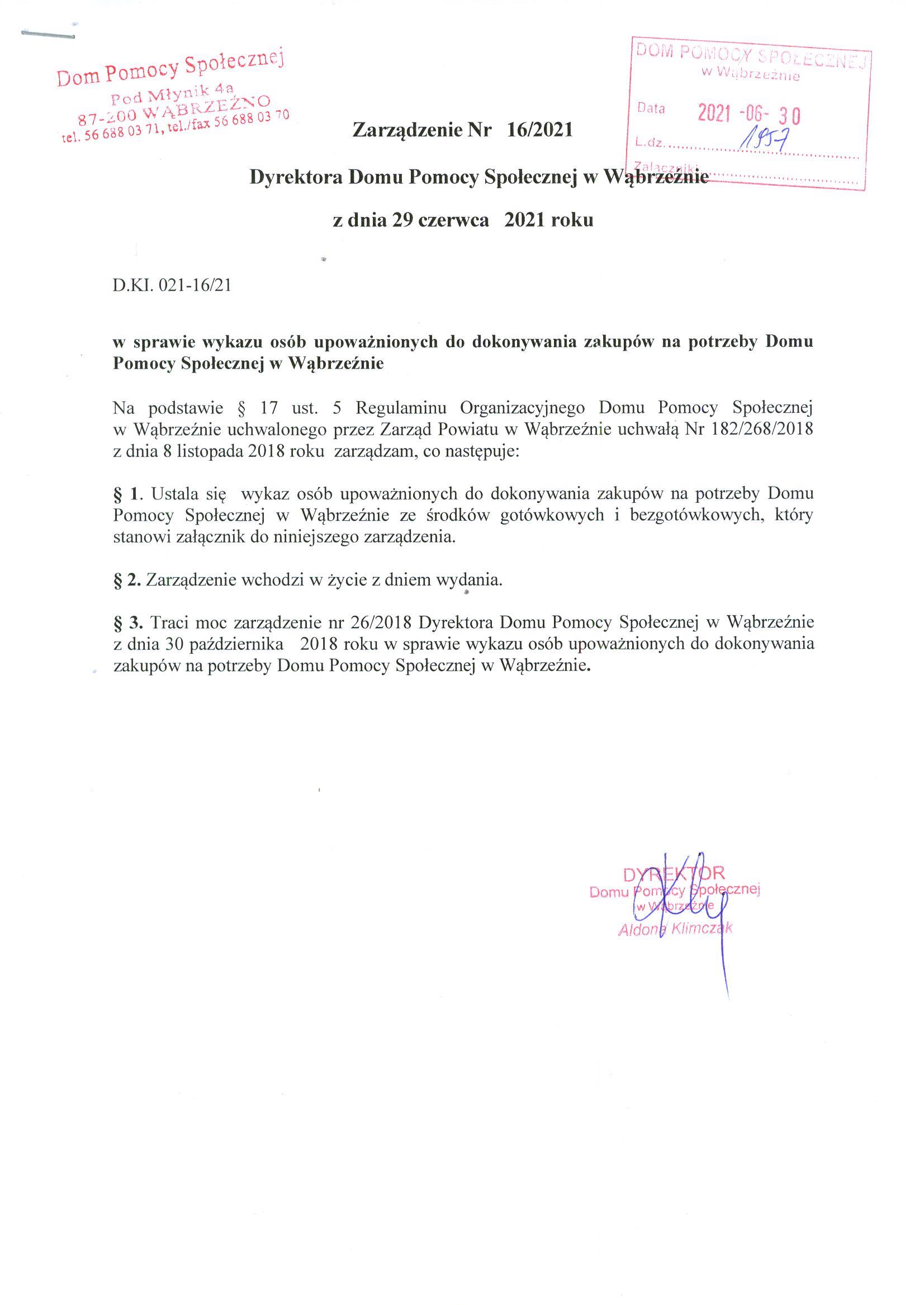 | zarządzenie 16-21 | dodany: 14:30, 09.07.2021 | przez: Redaktor DPS |