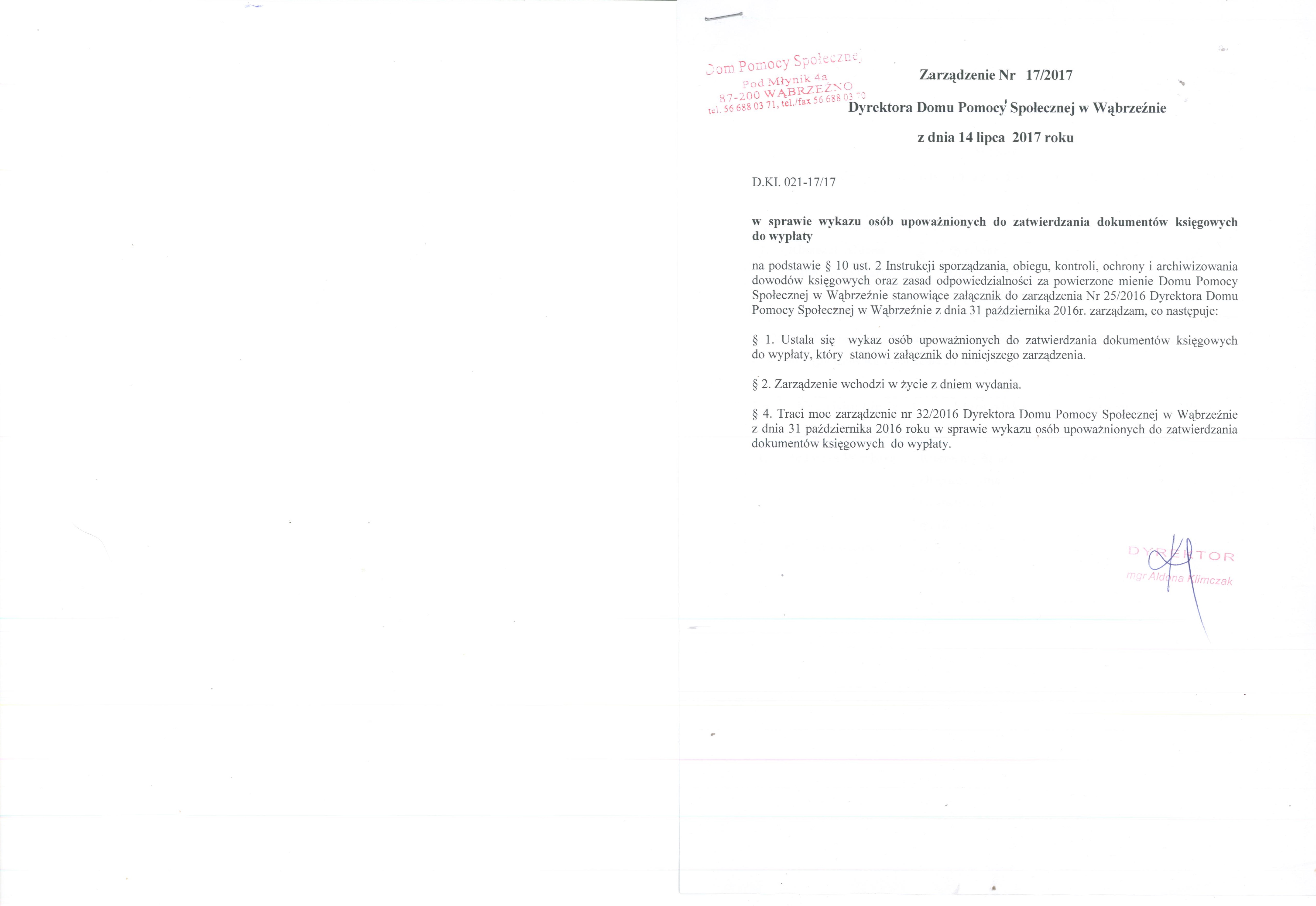 | ZARZĄDZENIE 17 | dodany: 09:01, 20.07.2017 | przez: Redaktor DPS |