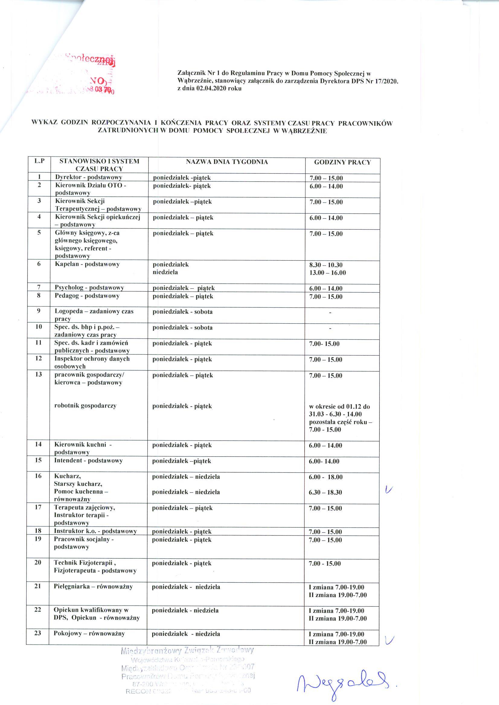 | utworzono: | data: 11:46, 08.04.2020 | przez: Redaktor DPS | Zarządzenie Nr 17/2020 Dyrektora Domu Pomocy Społecznej w Wąbrzeźnie z dnia 2 kwietnia 2020 roku w sprawie zmiany Regulaminu Pracy Domu Pomocy Społecznej w Wąbrzeźnie |