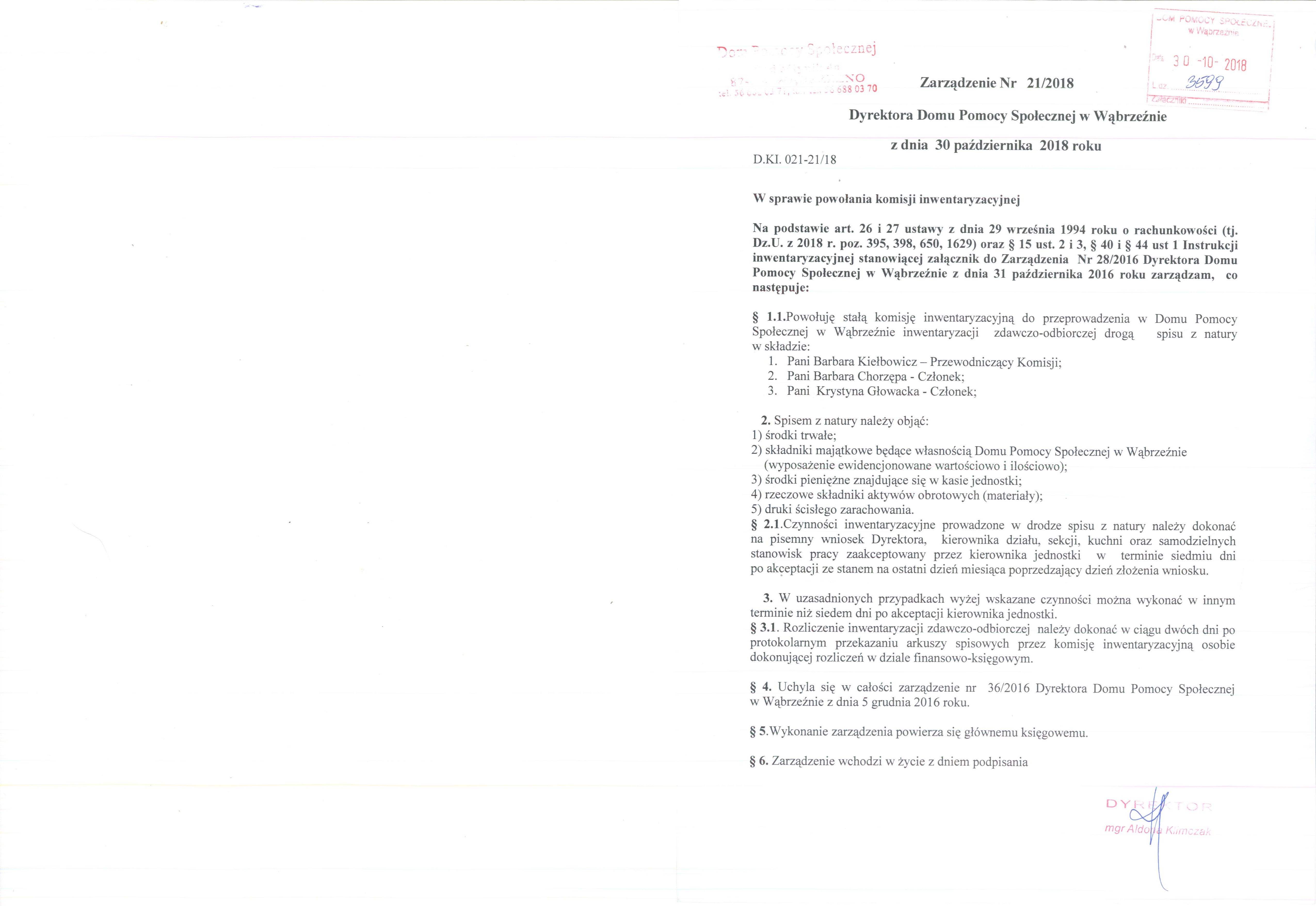 | zarządzenie 21 | dodany: 15:33, 05.11.2018 | przez: Redaktor DPS |