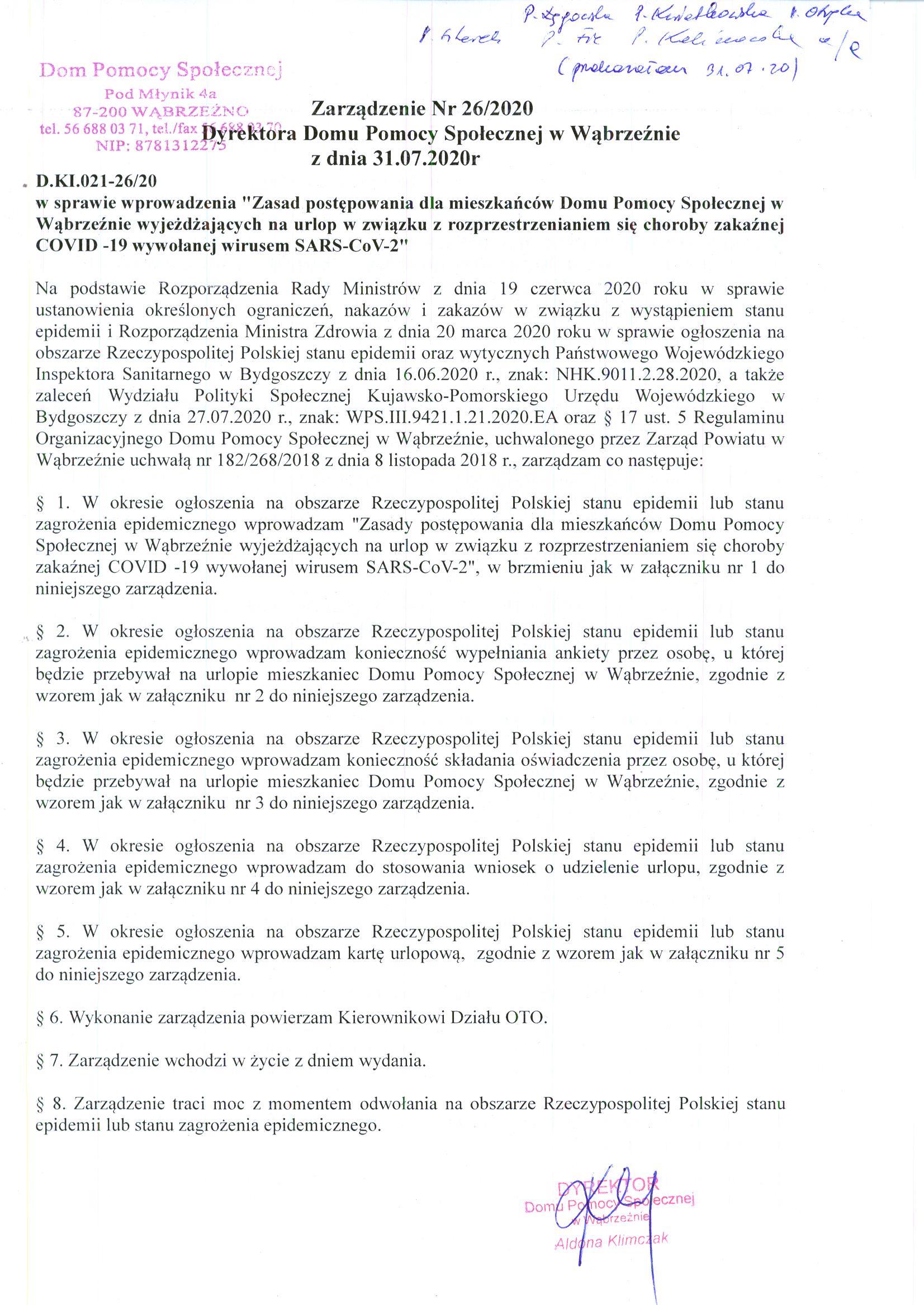 | zarządzenie 26.2020 | dodany: 12:59, 10.08.2020 | przez: Redaktor DPS |