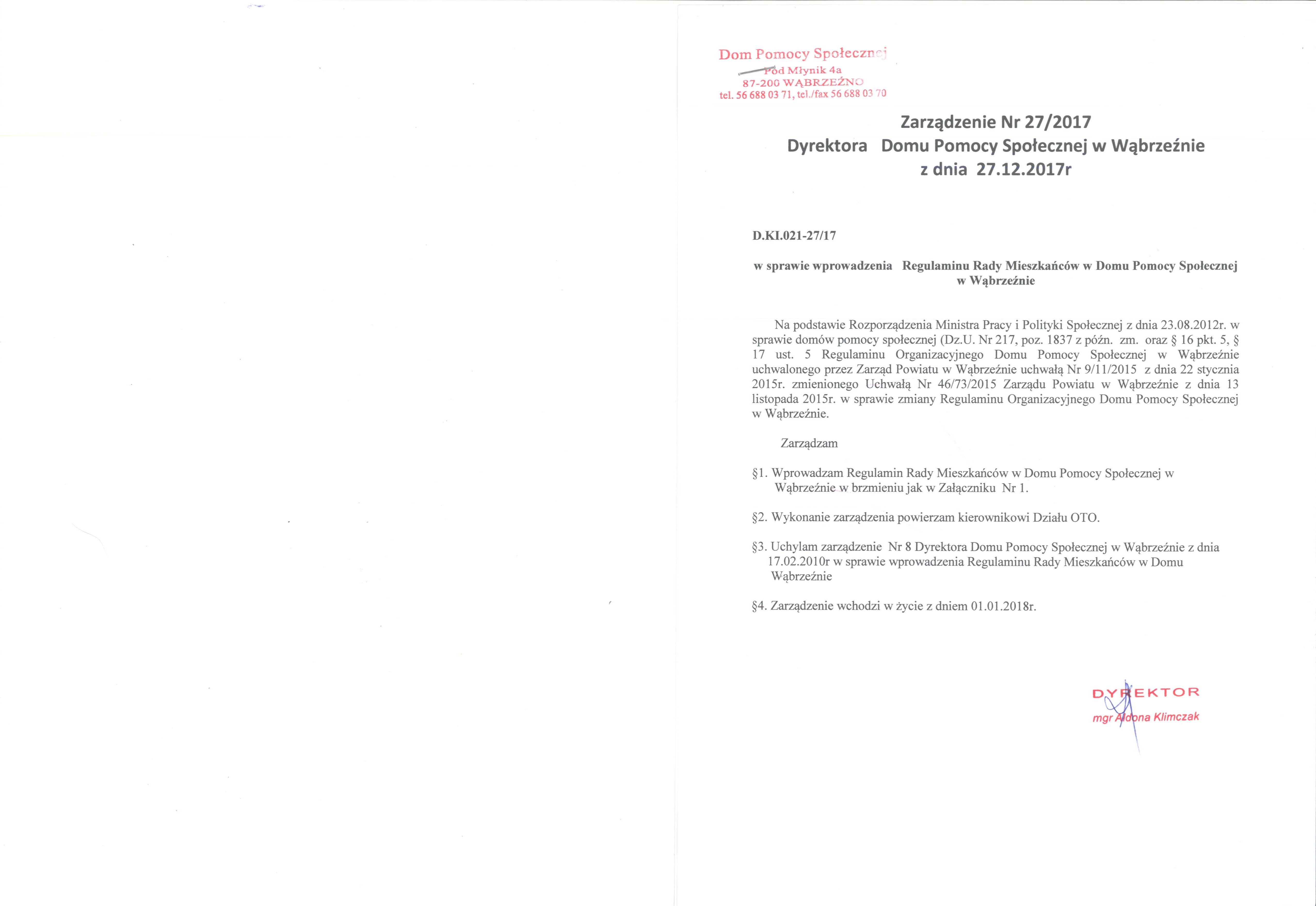 | zarządzenie 27 | dodany: 12:48, 27.12.2017 | przez: Redaktor DPS |