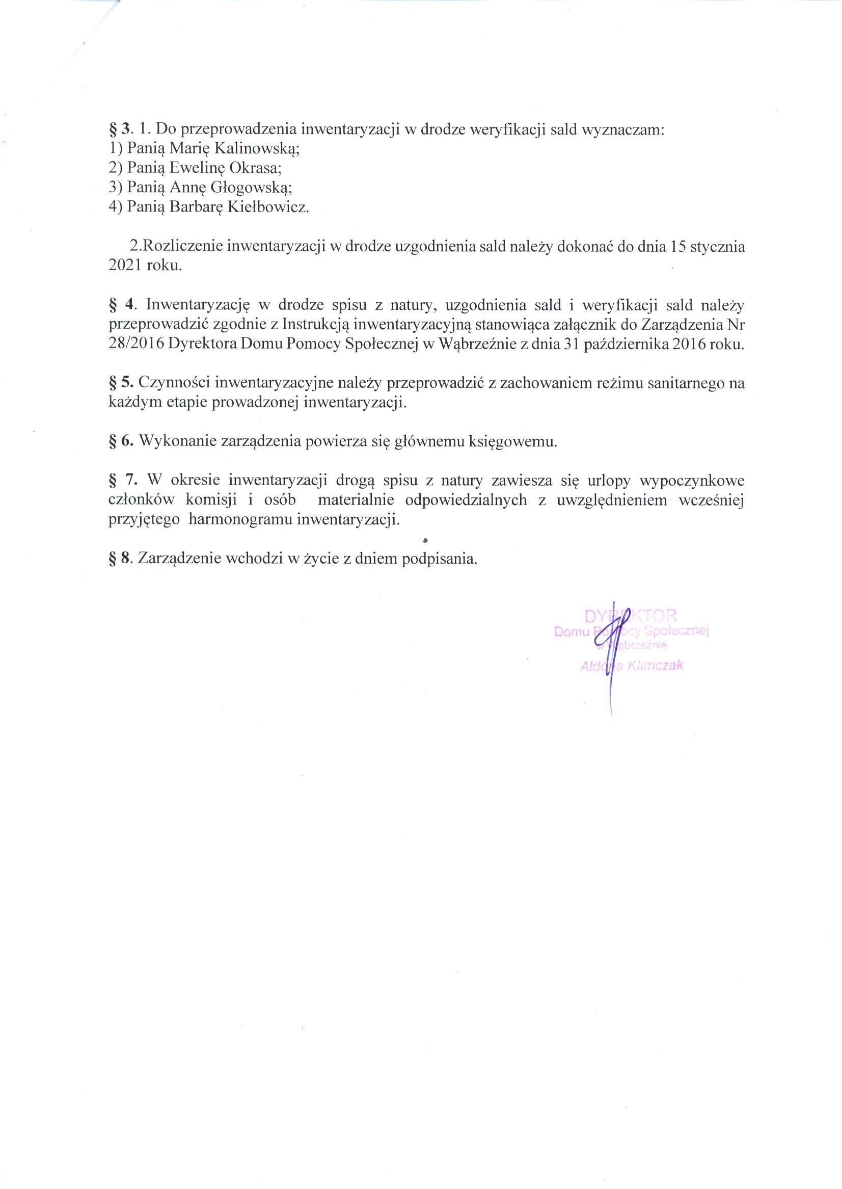 | utworzono: | data: 12:27, 03.11.2020 | przez: Redaktor DPS | Zarządzenie Nr 30/2020 Dyrektora Domu Pomocy Społecznej w Wąbrzeźnie z dnia 14 października 2020 roku w sprawie powołania komisji inwentaryzacyjnej |
