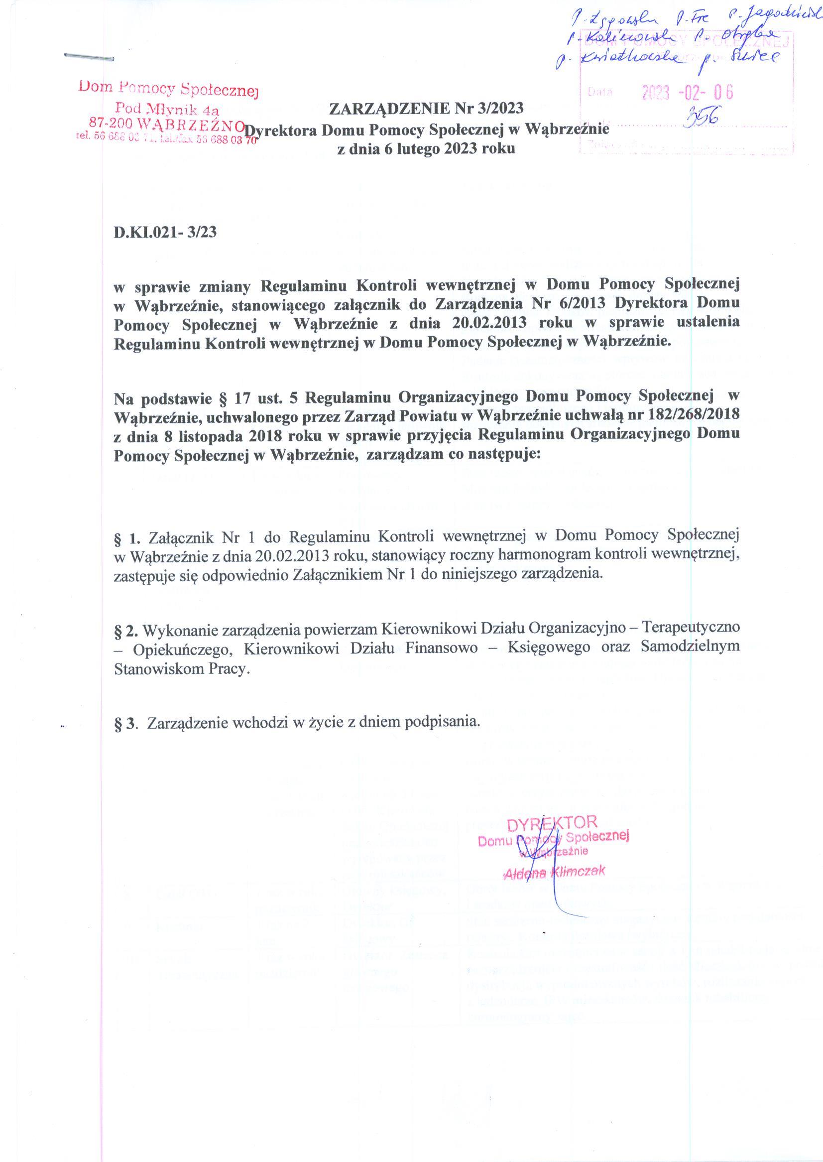 | zarządzenie nr 3.2023 (Rozmiar: 270 kB, JPG) | dodany: 09:40, 07.02.2023 | przez: Redaktor DPS |