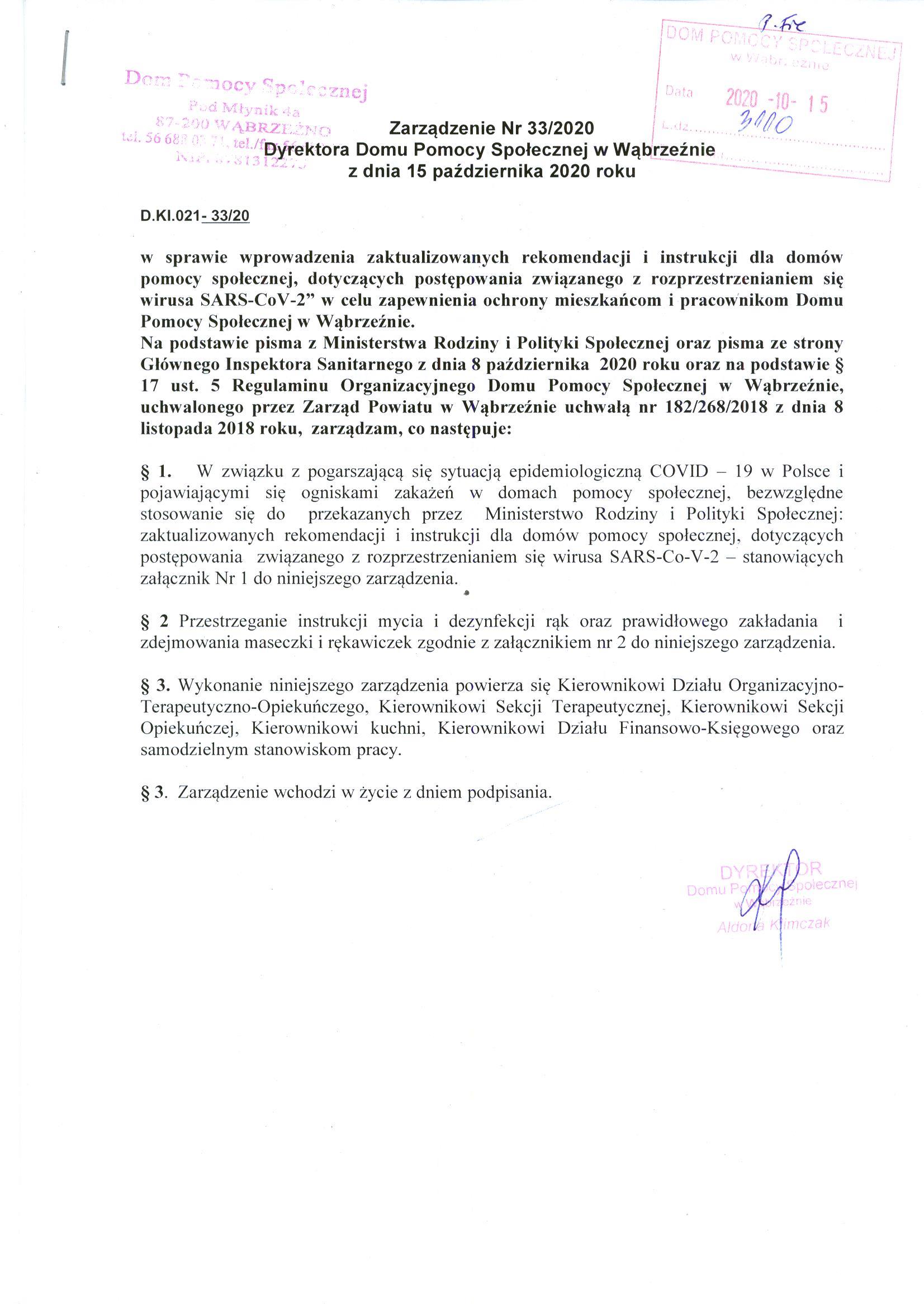 | zarządzenie 33-20.5 | dodany: 12:45, 03.11.2020 | przez: Redaktor DPS | |