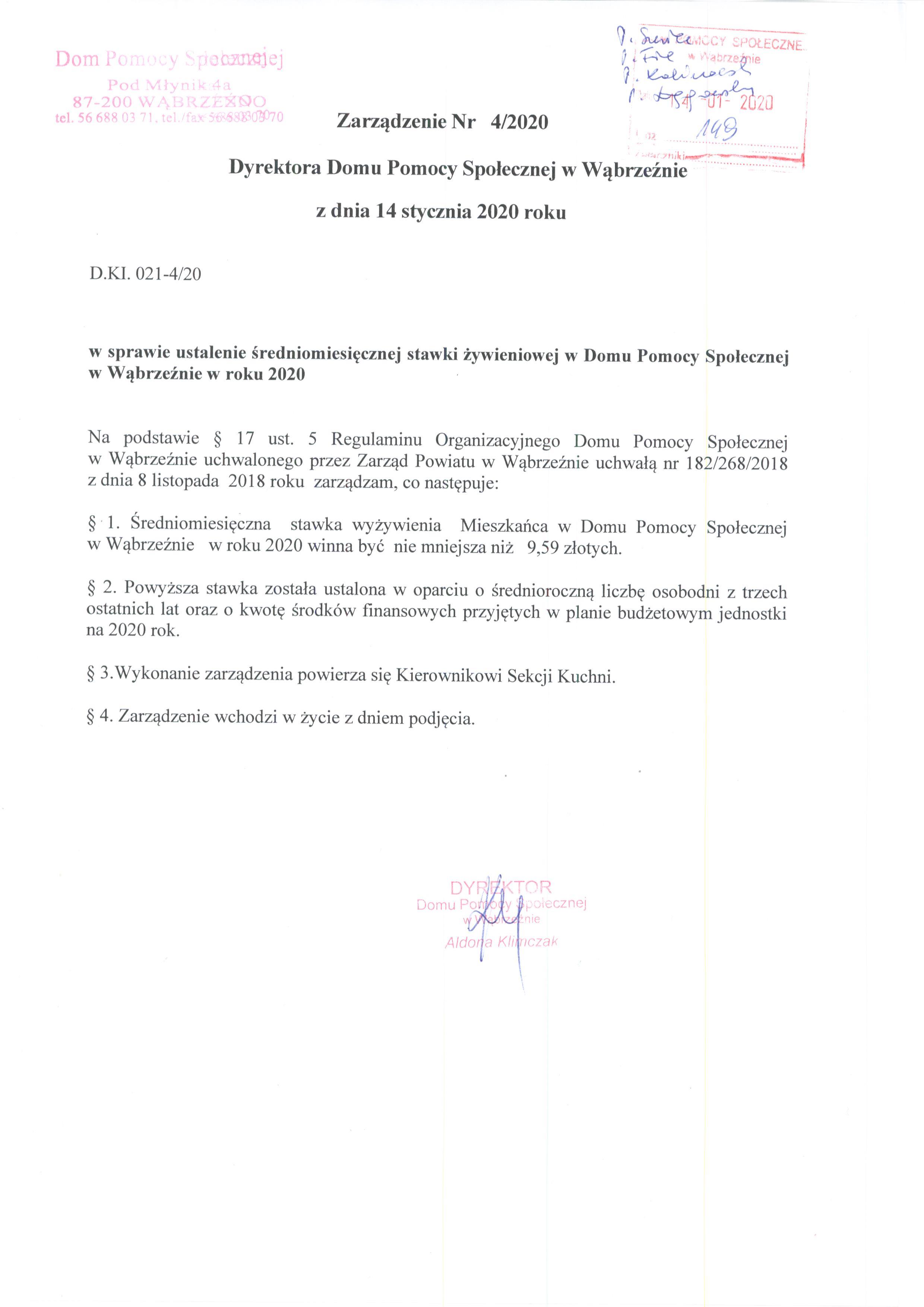 | zarządzenie 4 stawka żywieniowa 20 | dodany: 08:23, 23.01.2020 | przez: Redaktor DPS |