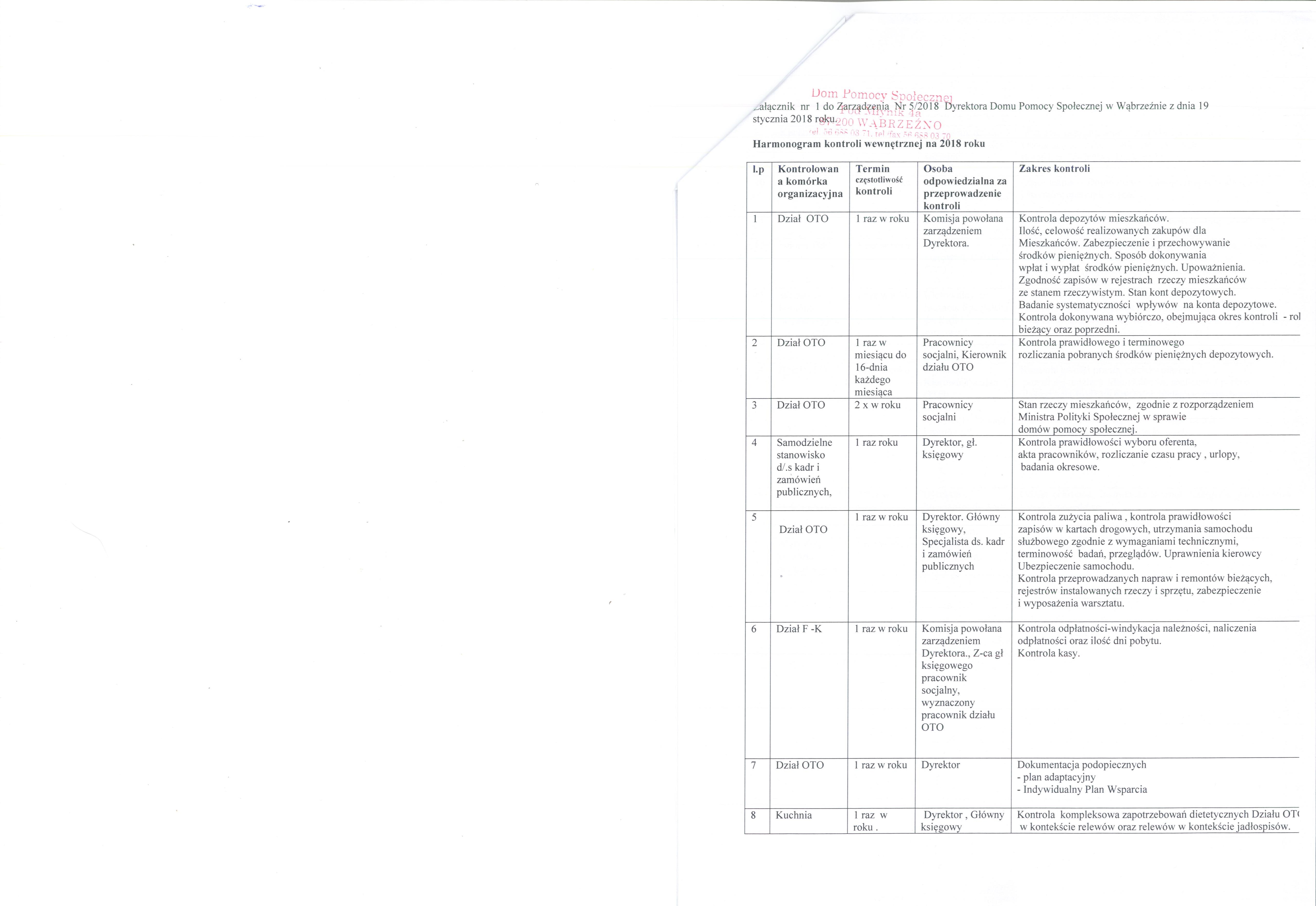 | osoba odpowiedzialna: | Dyrektor DPS | ||