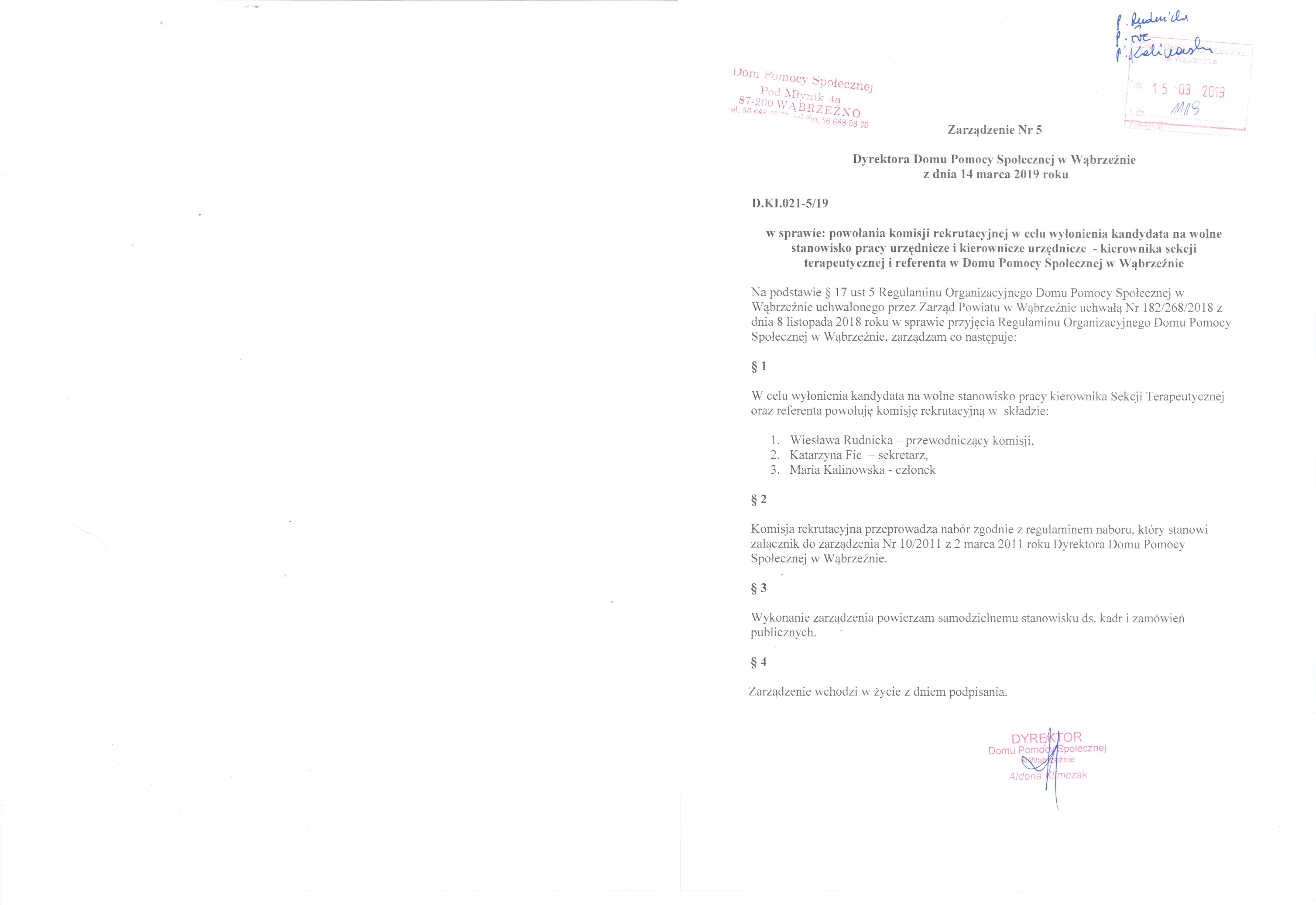 | zarządzenie 5 | dodany: 09:21, 18.03.2019 | przez: Redaktor DPS |