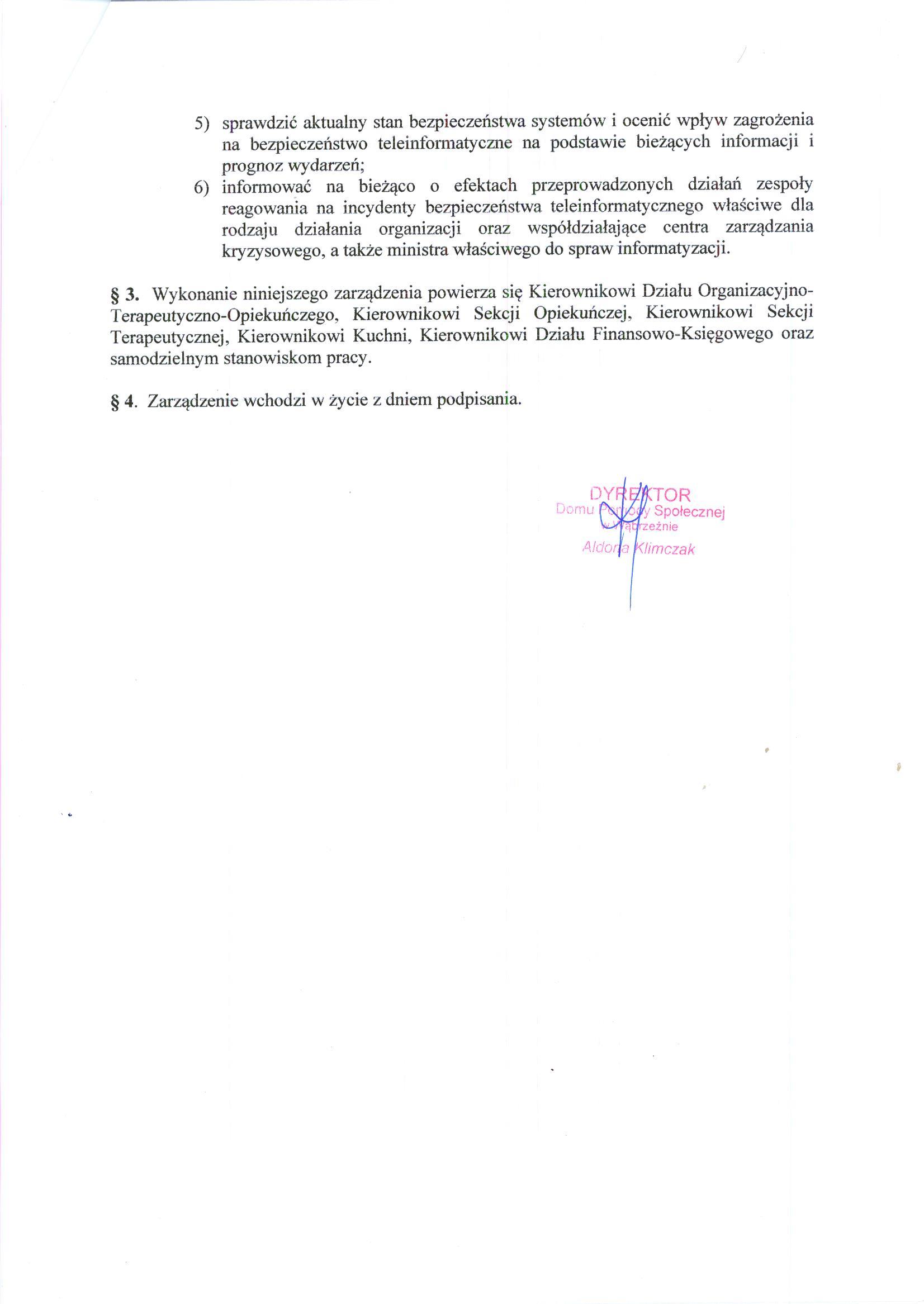| utworzono: | data: 12:18, 17.02.2022 | przez: Redaktor DPS | Zarządzenie Nr 5/2022 Dyrektora Domu Pomocy Społecznej w Wąbrzeźnie z dnia 16 lutego 2022 roku w sprawie wprowadzenia stopni alarmowych w związku z zagrożeniem wystąpienia zdarzenia terrorystycznego |