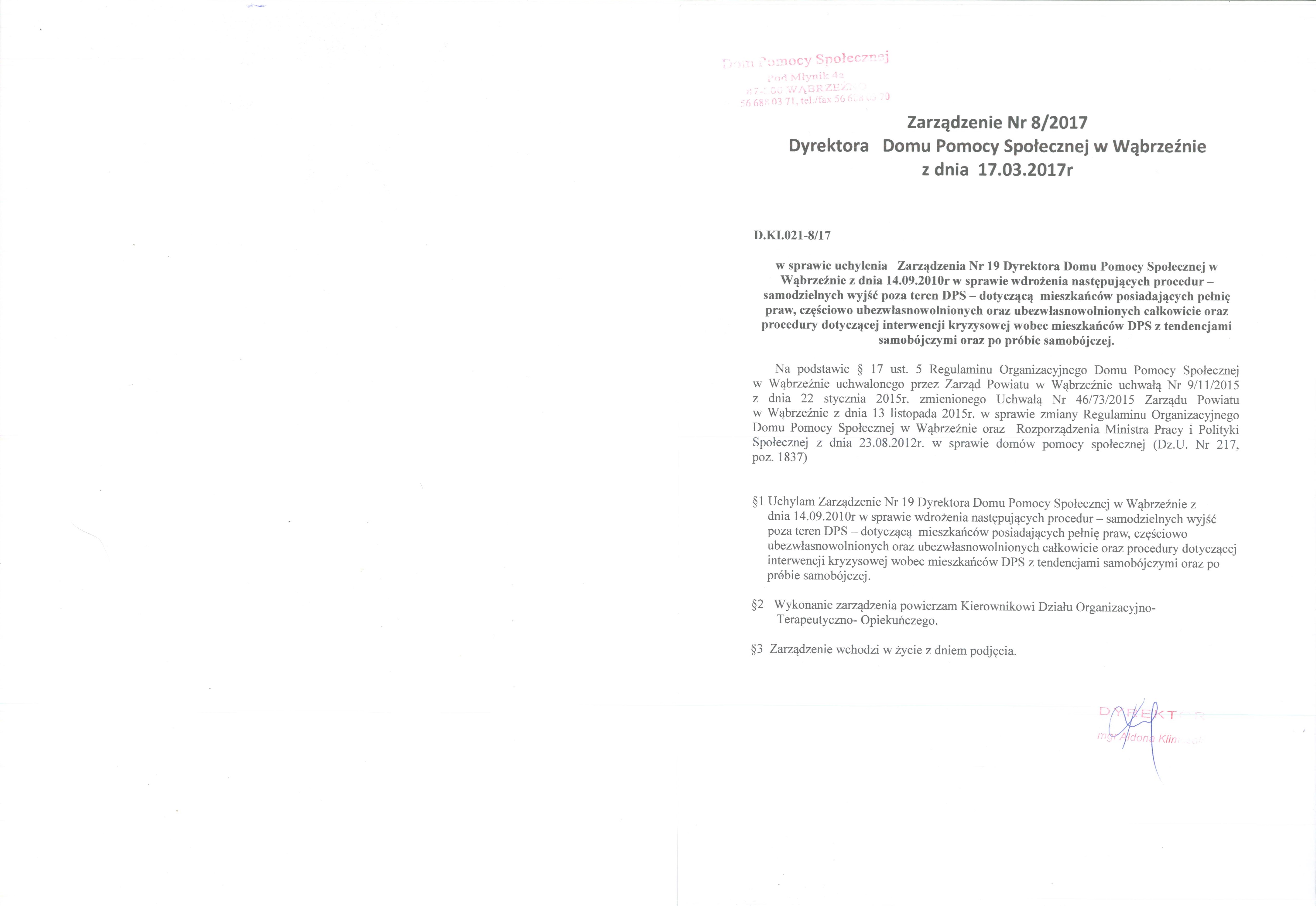 | zarządzenie 8 | dodany: 14:10, 21.03.2017 | przez: Redaktor DPS |