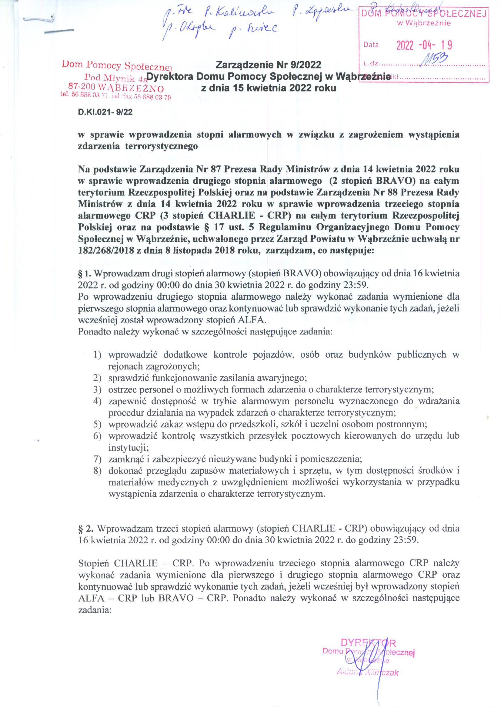 | zarządzenie 9-22 (Rozmiar: 478 kB, JPG) | dodany: 10:22, 21.04.2022 | przez: Redaktor DPS | |